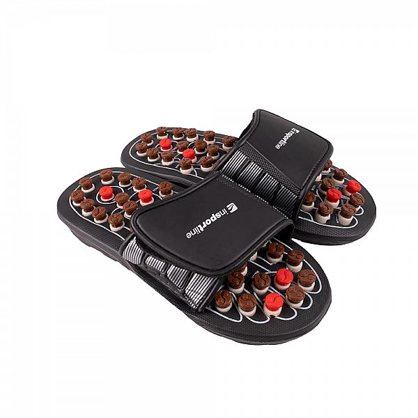Сандалі для масажу inSPORTline Shoestek - це революційний спосіб забезпечити миттєве розслаблення та полегшення . Ці босоніжки поєднують елегантний дизайн з інноваційною технологією 41 точкового масажу на кожному взутті, які забезпечують рефлексологічний масаж і допомагають стимулювати нервові закінчення .