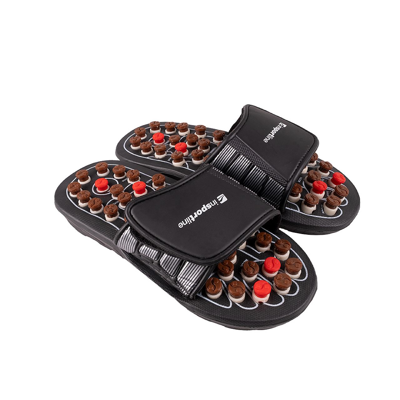Сандалі для масажу inSPORTline Shoestek - це революційний спосіб забезпечити миттєве розслаблення та полегшення . Ці босоніжки поєднують елегантний дизайн з інноваційною технологією 41 точкового масажу на кожному взутті, які забезпечують рефлексологічний масаж і допомагають стимулювати нервові закінчення .