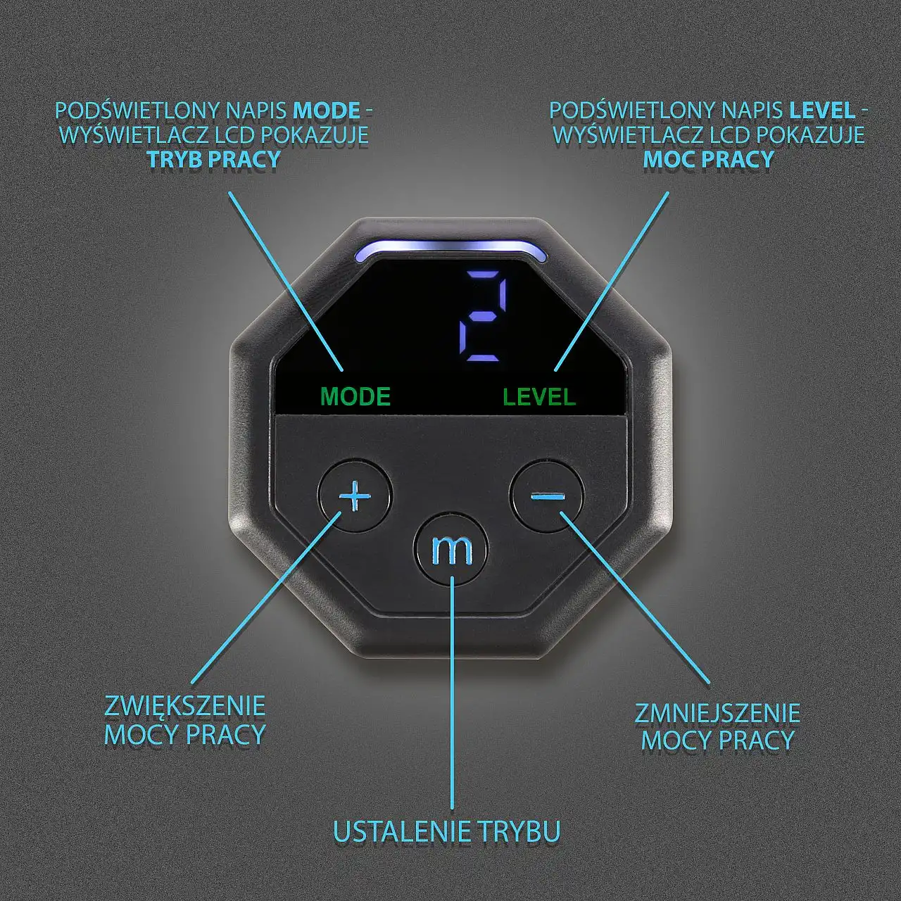 Пристрій має цілих 10 режимів роботи та 20 рівнів інтенсивності . Завдяки цьому ми можемо ідеально адаптувати навчання до наших потреб і рівня просування. ABS Master Pro Super можна використовувати під час класичних тренувань, а також під час повсякденних занять. Основна відмінність стандартних тренувань від використання ABS Master Pro Super полягає в тому, що ми не навантажуємо суглоби. Хвилі EMS сформують і зміцнять тіло без ризику травм.