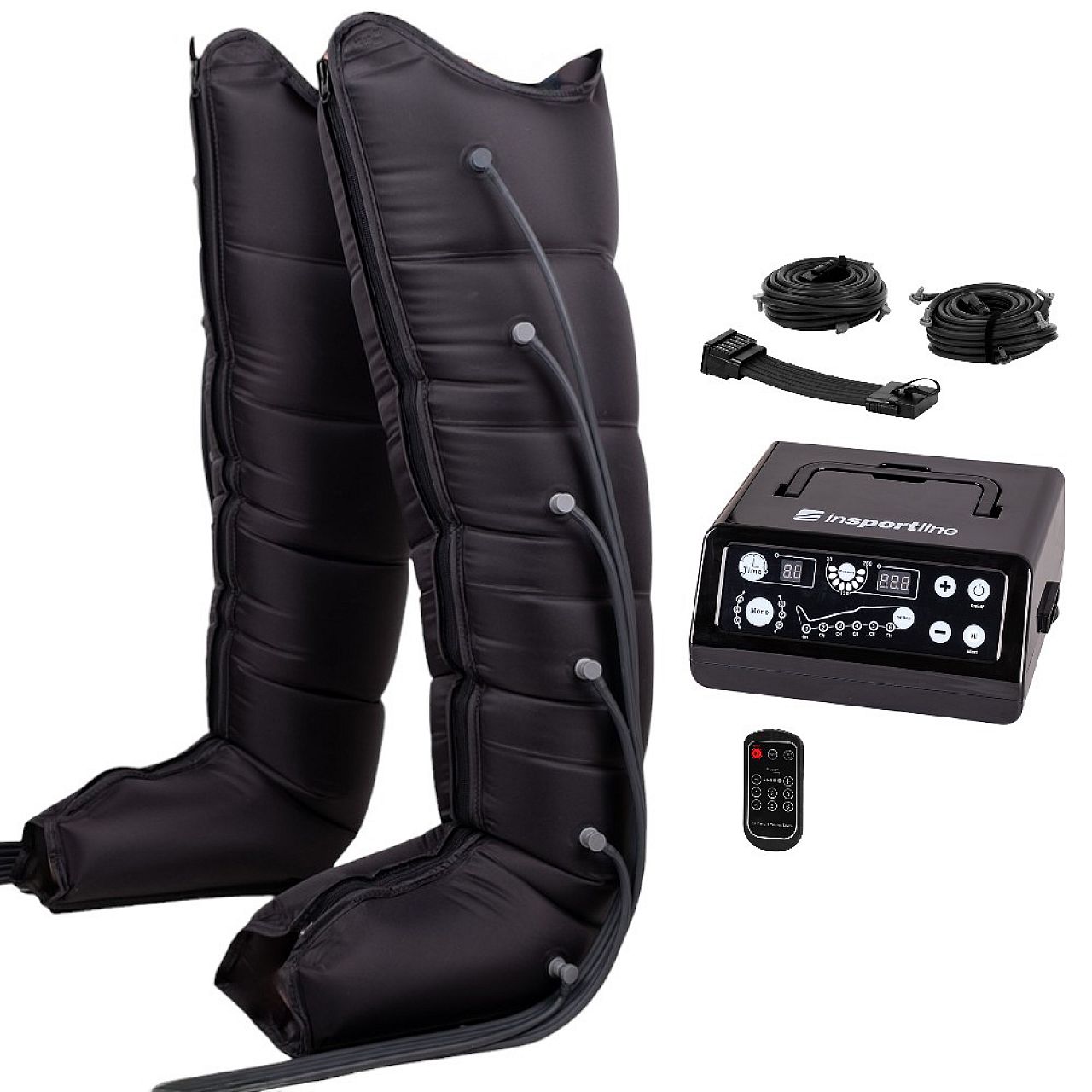 Система повітряного компресійного масажу inSPORTline Compisimo пропонує інтуїтивно зрозумілу панель керування та пульт дистанційного керування . Ви можете вибрати з 6 різних програм , від розслаблення до інтенсивного глибокого масажу тканин. Ви можете регулювати тиск і тривалість масажу на свій смак.