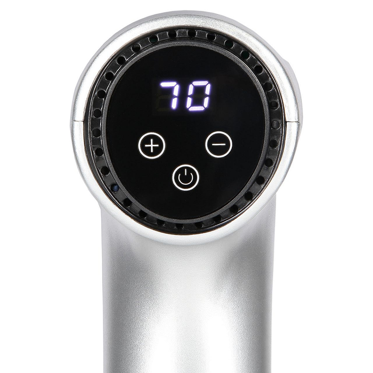 Продукт дуже простий у використанні та має чіткий світлодіодний дисплей, який показує поточний рівень швидкості. Він також зручний і легкий. Не буде проблем з виконанням масажу, зручно сидячи перед телевізором або за робочим столом. Крім того, пістолет оснащений міцним акумулятором, який при повній зарядці забезпечить вам роботу до 120 хвилин. Весь набір упакований у зручну валізу, яка полегшує транспортування обладнання, наприклад, у подорожі.