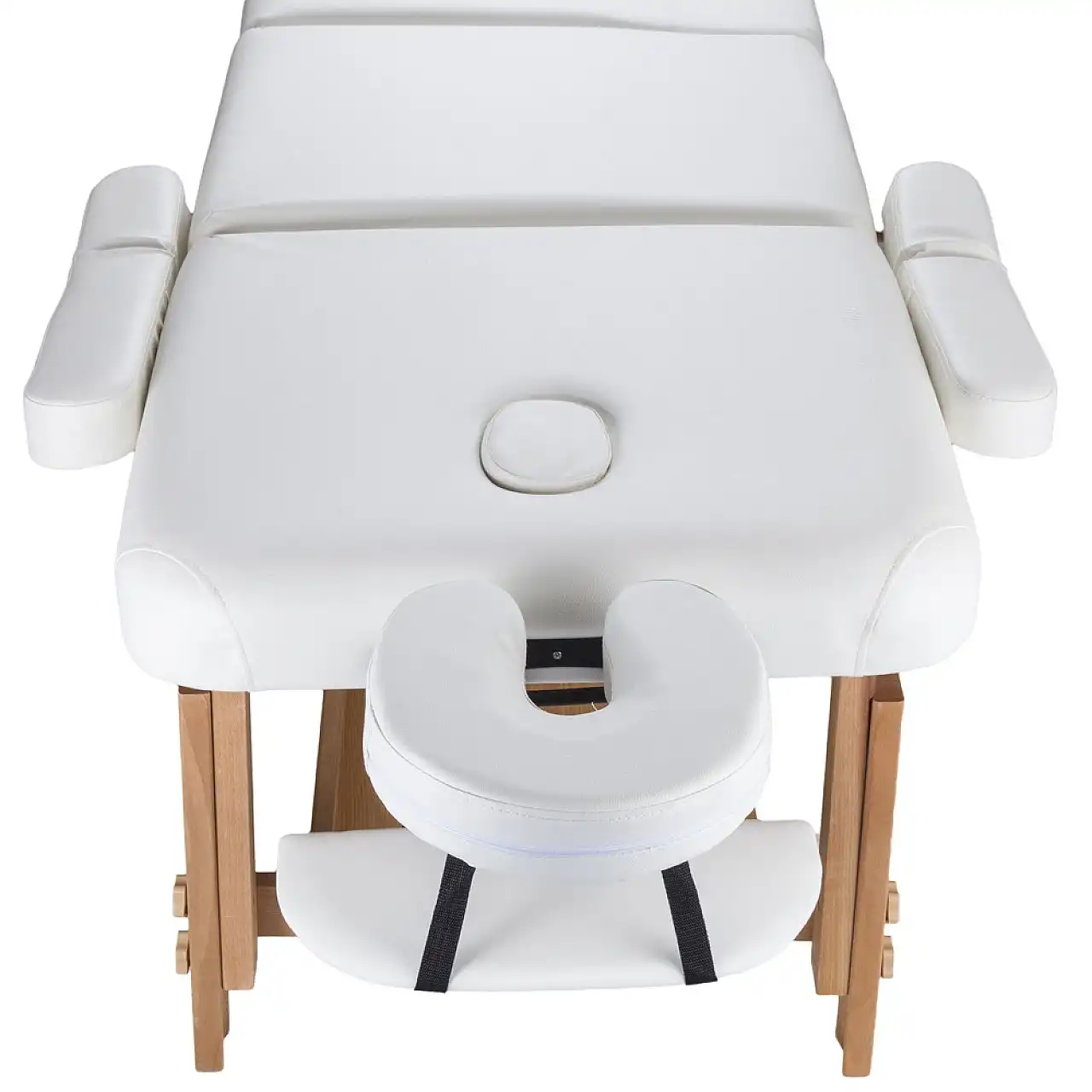 Висота ніжок регулюється стопорними гвинтами в діапазоні 58-77 см. Стіл має регульований підголовник, що знімається, який служить отвором для обличчя для більш високих людей, і підлокітники. Завдяки механізму важеля розкладання і розкладання ліжка відбувається швидко і без особливих зусиль. Ліжко також має плавне регулювання спинки.