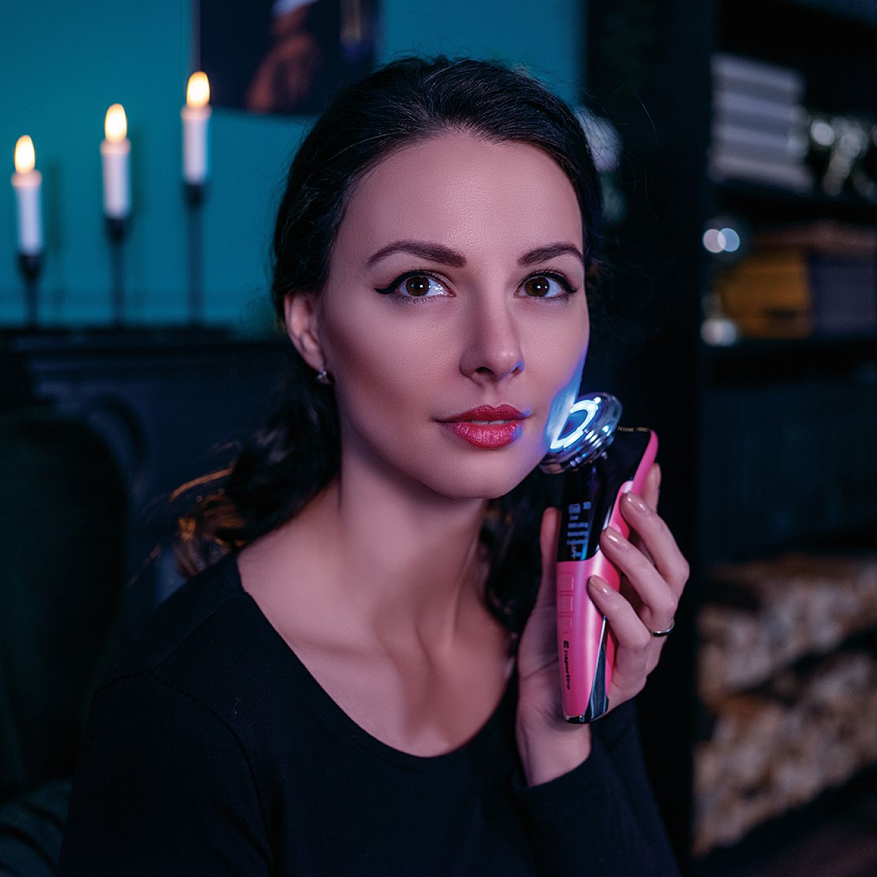Під час застосування також можна використовувати режим світлотерапії у вигляді червоного або синього світла . Ми рекомендуємо використовувати пристрій два-три рази на тиждень , кожного разу протягом приблизно 5 хвилин . Автоматичні режими попередньо налаштовані на найбільш оптимальну тривалість, тому все, що вам потрібно зробити, це увімкнути пристрій, застосувати і дозволити собі побалувати себе!