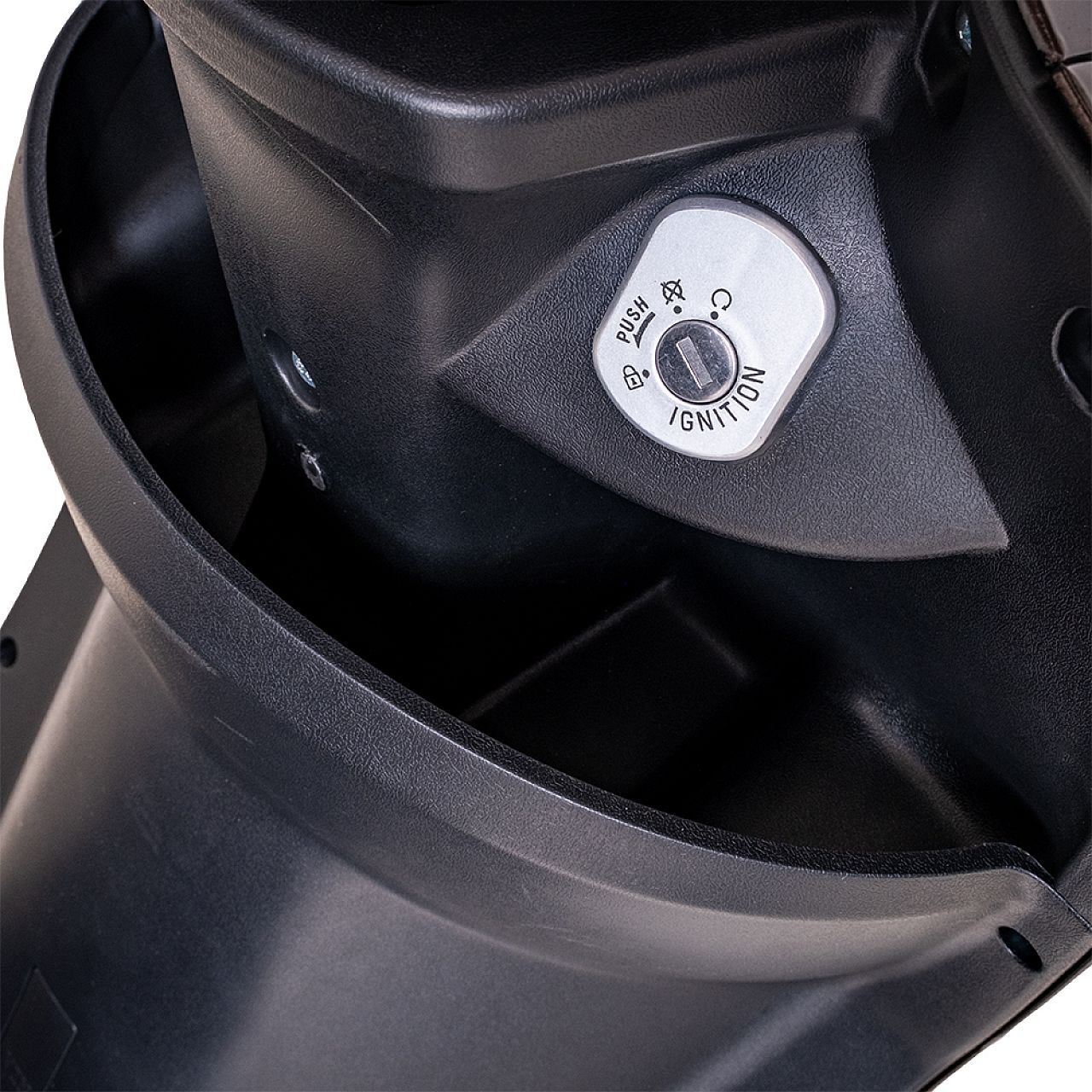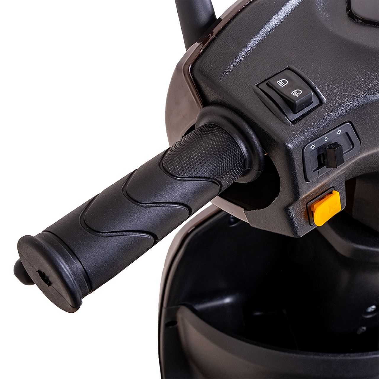 Оскільки це електричний скутер , він тихий і, отже, екологічно чистий. І на довершення всього, ви можете керувати ним без водійських прав ! Сидіння зручне; а завдяки відкидним підлокітникам ви можете легко сісти, навіть якщо ви маєте фізичні обмеження. Ззаду є два ящики для зберігання , в які можна покласти сумки з покупками або менший багаж.