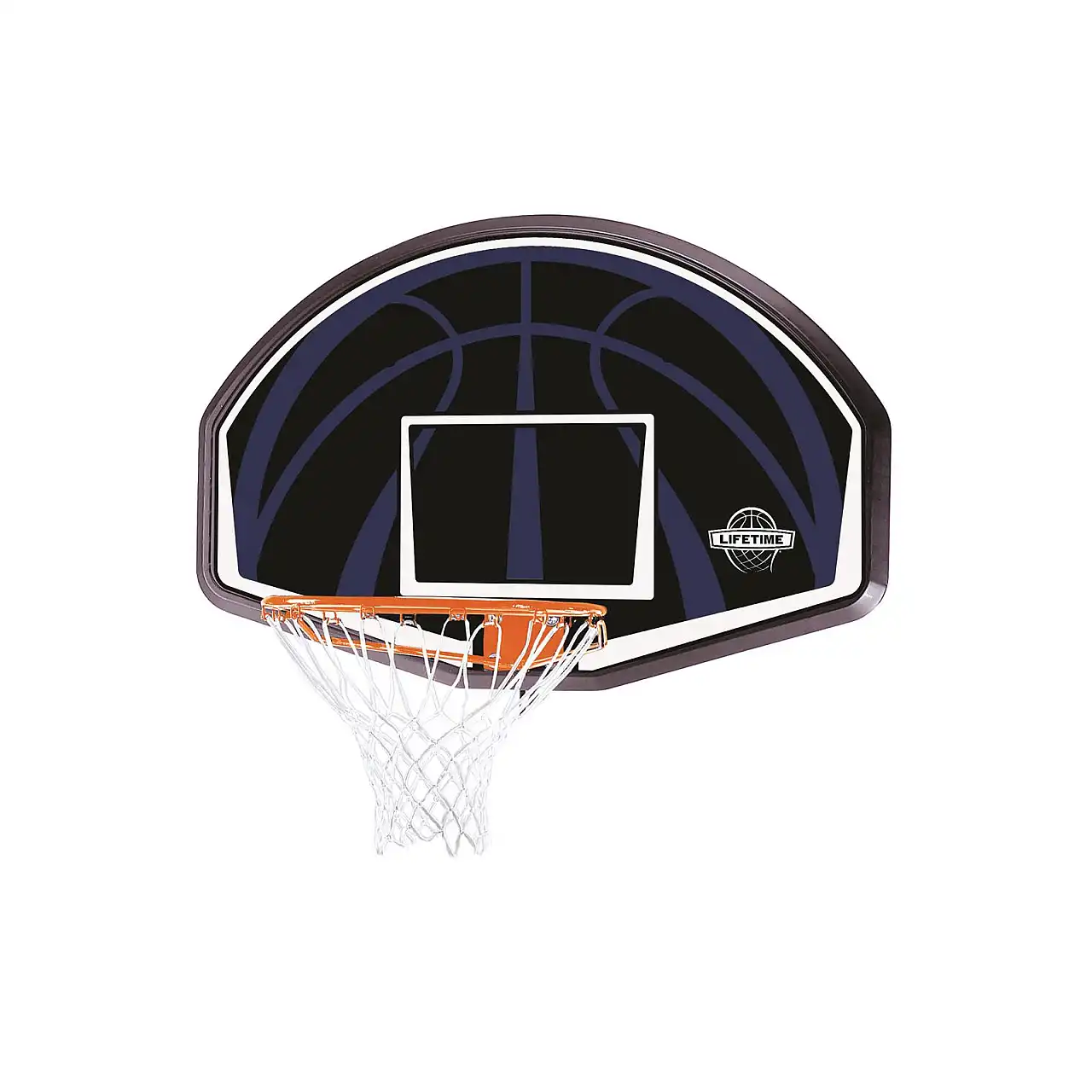 Міцний, удароміцний 44-дюймовий баскетбольний щит, виготовлений за технологією Impact®, із поліетилену високої щільності з помаранчевим ободом Classic. Графіка на щиті стійка до вицвітання під впливом УФ-променів. Обід виготовлений із сталевої труби з бічними підсиленнями. атмосферостійка нейлонова сітка.