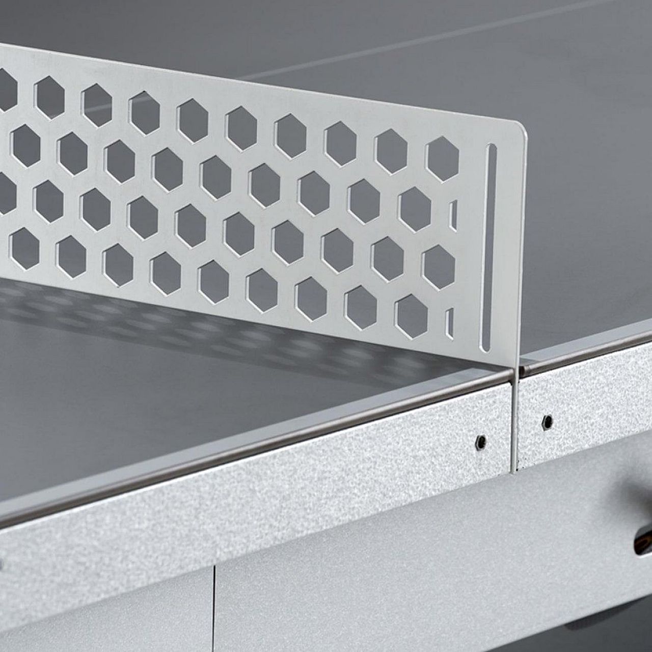Стіл 510M – незабутня вулична модель. Завдяки вигнутій обтічній формі стіл особливо стійкий до поганого поводження, наприклад, до несприятливих погодних умов, ударів та вандалізму. Його 100% сталева конструкція та верх із твердого ламінату високої щільності здатні витримувати дуже сильні удари, як від ударів м'яча, так і від негоди. Ця модель користується великим успіхом майже 10 років і користується популярністю в кемпінгах, на курортах, школах, готелях та багато іншого.
