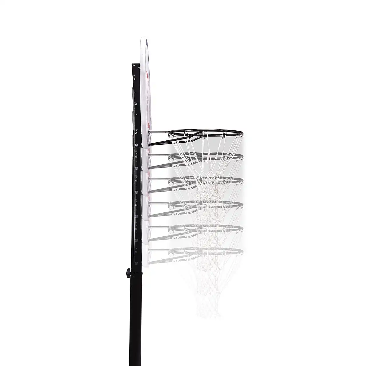 Портативна баскетбольна стійка оснащена 44-дюймовим щитом Impact® із поліетилену високої щільності. Телескопічне регулювання висоти щита дозволяє швидко та легко встановлювати на різних рівнях від 229 до 305 см, забезпечуючи комфортну та безпечну гру на будь-якому рівні. Доповнений міцним обручем Classic з атмосферостійкою нейлоновою сіткою та круглою штангою діаметром 6,9 см. Основа Streamline об'ємом 45 літрів з наповненням із води або піску забезпечує повну стійкість підставки. Ідеальний набір для баскетболістів новачка та середнього рівня.