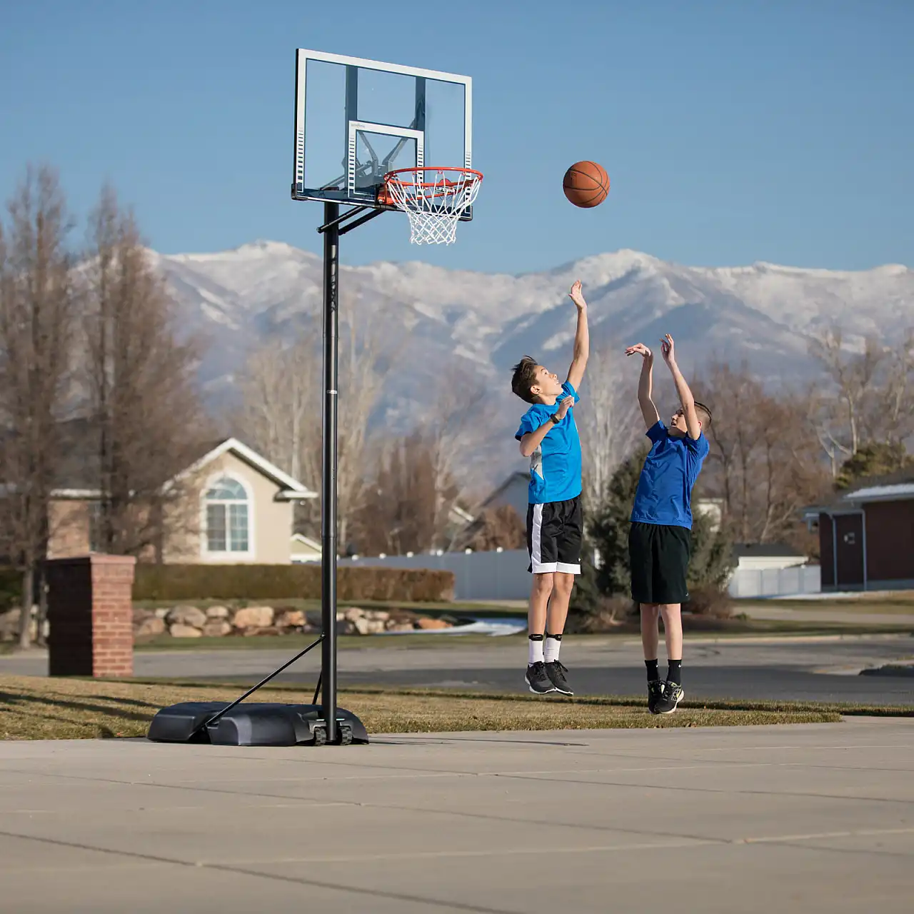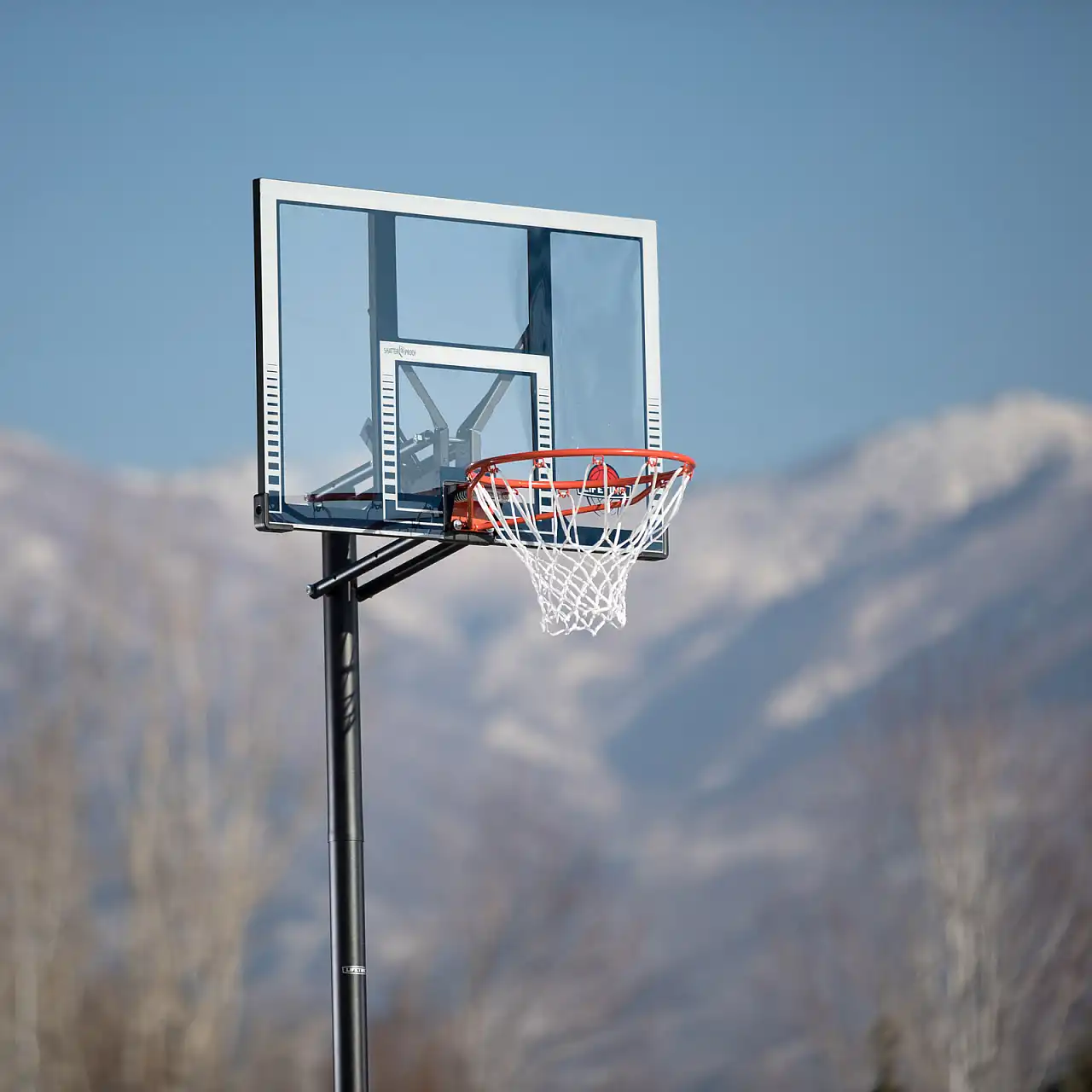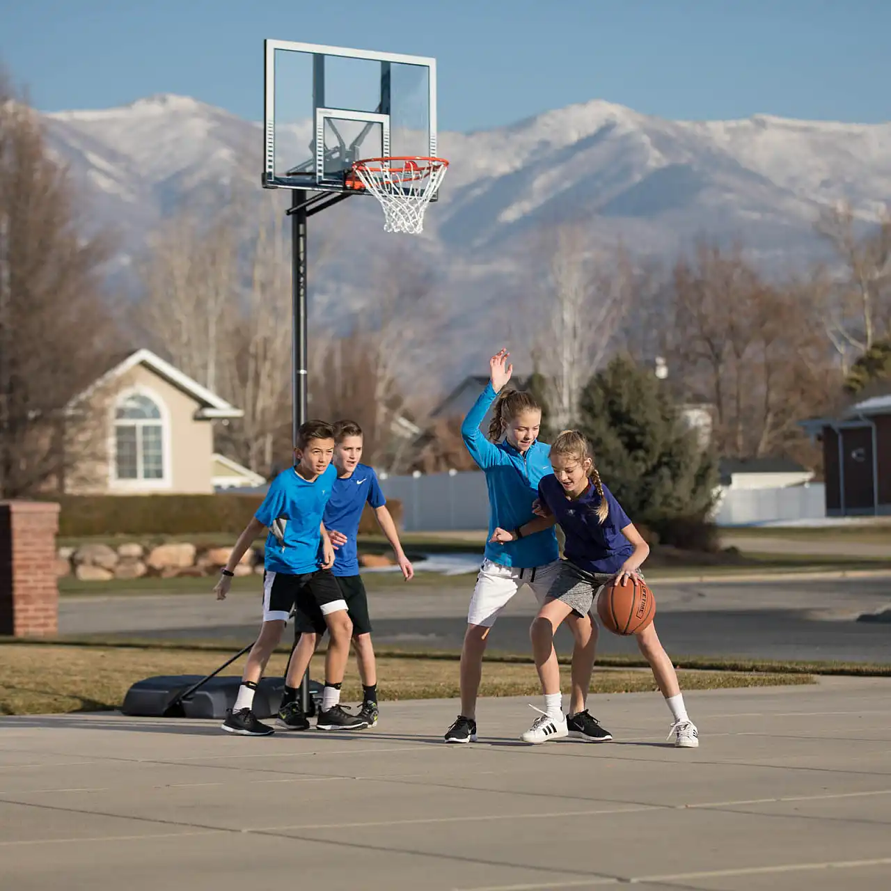 Переносна баскетбольна стійка має 44-дюймовий щит, виготовлений за технологією Steel-Framed Shatter-Proof. Технологія Shatter-Proof гарантує довгі роки довговічності та удароміцності завдяки покриттю з полікарбонату найвищої якості Makrolon®. Steel-Framed – це міцний сталевий каркас щита. Крім того, захист нижньої частини щита. край щита та технологія регулювання висоти щита Quick Adjust® II забезпечують комфортну та безпечну гру на будь-якому рівні розвитку, завдяки діапазону регулювання від 244 до 300 см. Все це доповнюється міцним ободом з гнучким похилим механізмом Slam-It® на основі системи подвійних пружин та атмосферо нейлонова сітка та кругла стійка діаметром 7,6 см. Транспортні ролики, встановлені на стійкій основі, наповненій водою або піском, ємністю 128 літрів забезпечують повну мобільність та стійкість стійки.