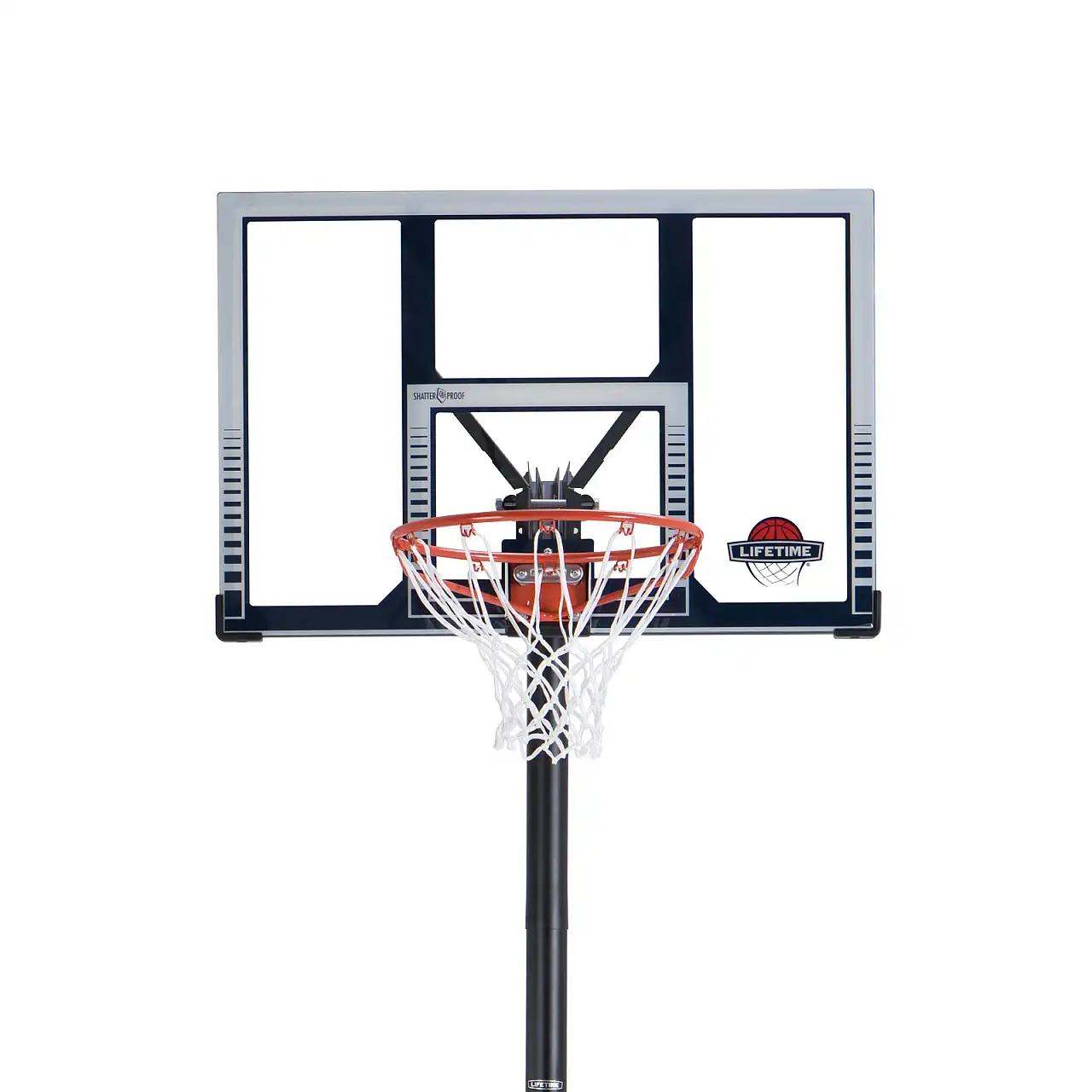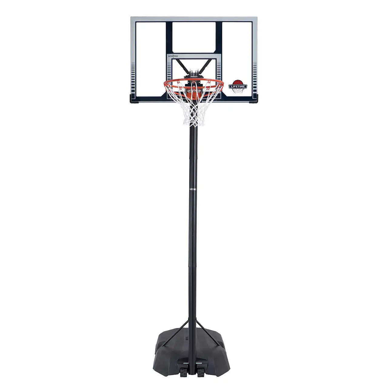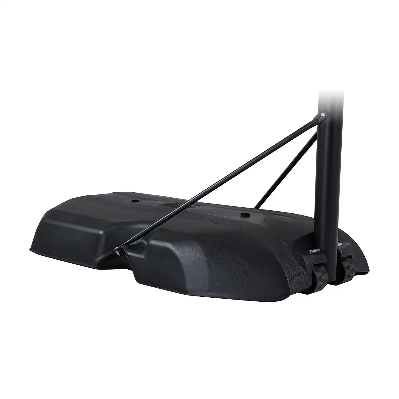 Переносна баскетбольна стійка має 44-дюймовий щит, виготовлений за технологією Steel-Framed Shatter-Proof. Технологія Shatter-Proof гарантує довгі роки довговічності та удароміцності завдяки покриттю з полікарбонату найвищої якості Makrolon®. Steel-Framed – це міцний сталевий каркас щита. Крім того, захист нижньої частини щита. край щита та технологія регулювання висоти щита Quick Adjust® II забезпечують комфортну та безпечну гру на будь-якому рівні розвитку, завдяки діапазону регулювання від 244 до 300 см. Все це доповнюється міцним ободом з гнучким похилим механізмом Slam-It® на основі системи подвійних пружин та атмосферо нейлонова сітка та кругла стійка діаметром 7,6 см. Транспортні ролики, встановлені на стійкій основі, наповненій водою або піском, ємністю 128 літрів забезпечують повну мобільність та стійкість стійки.