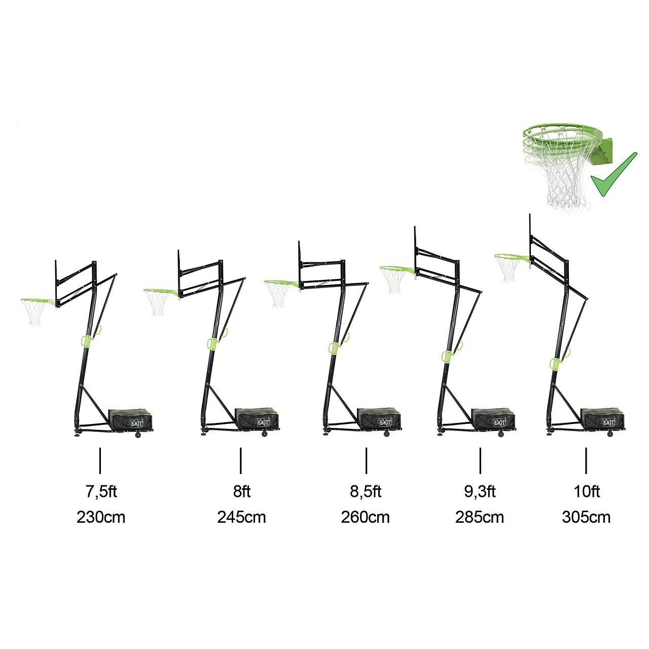 Баскетбольний щит може бути відрегульований на п'ять різних висот: 230 -245 - 260 - 285 - 305 см, тому використати його зможуть як діти, так і дорослі.