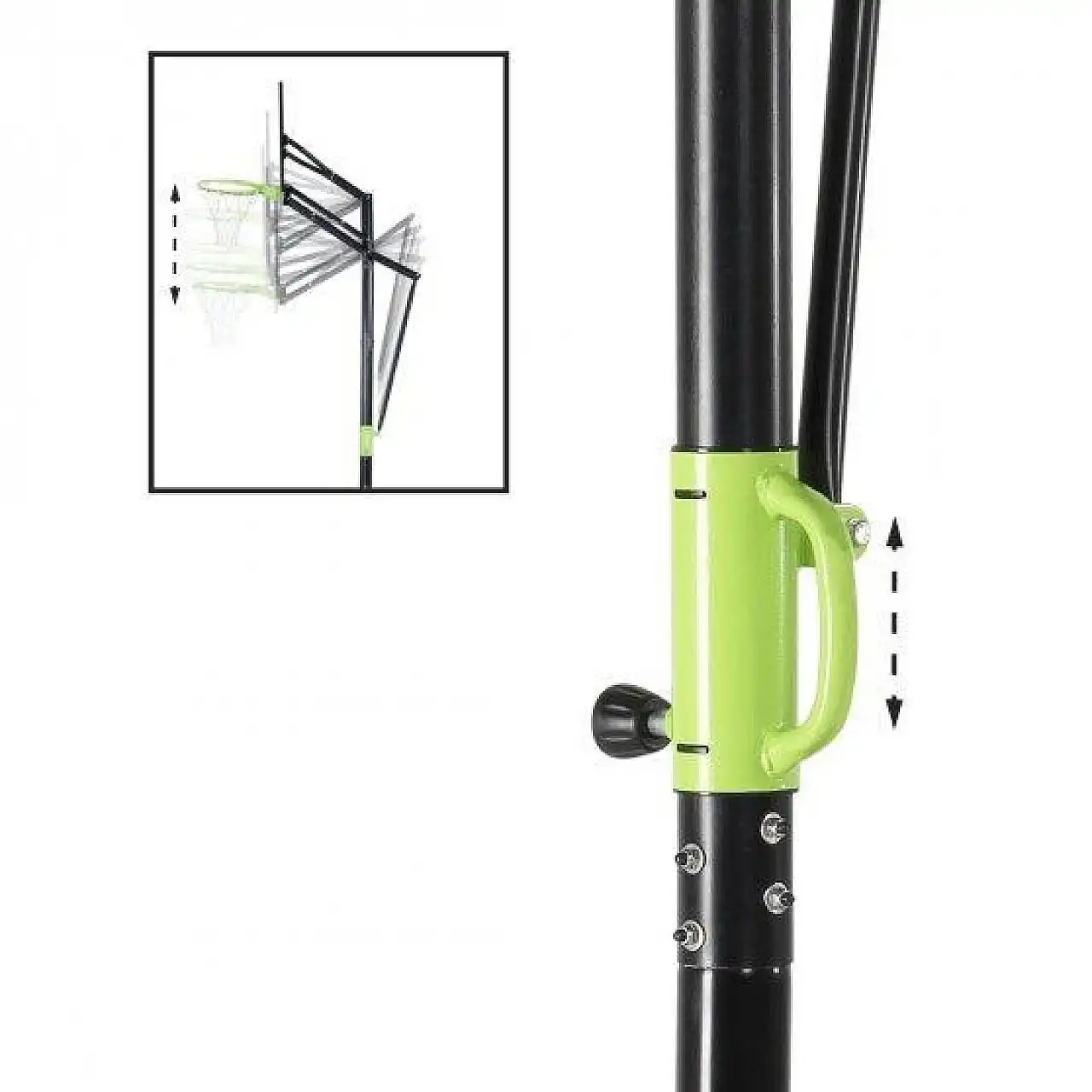 Баскетбольний щит може бути відрегульований на шість різних висот: 230 -245 - 260 - 275 - 290 - 305 см, тому використовувати його зможуть як діти, так і дорослі.