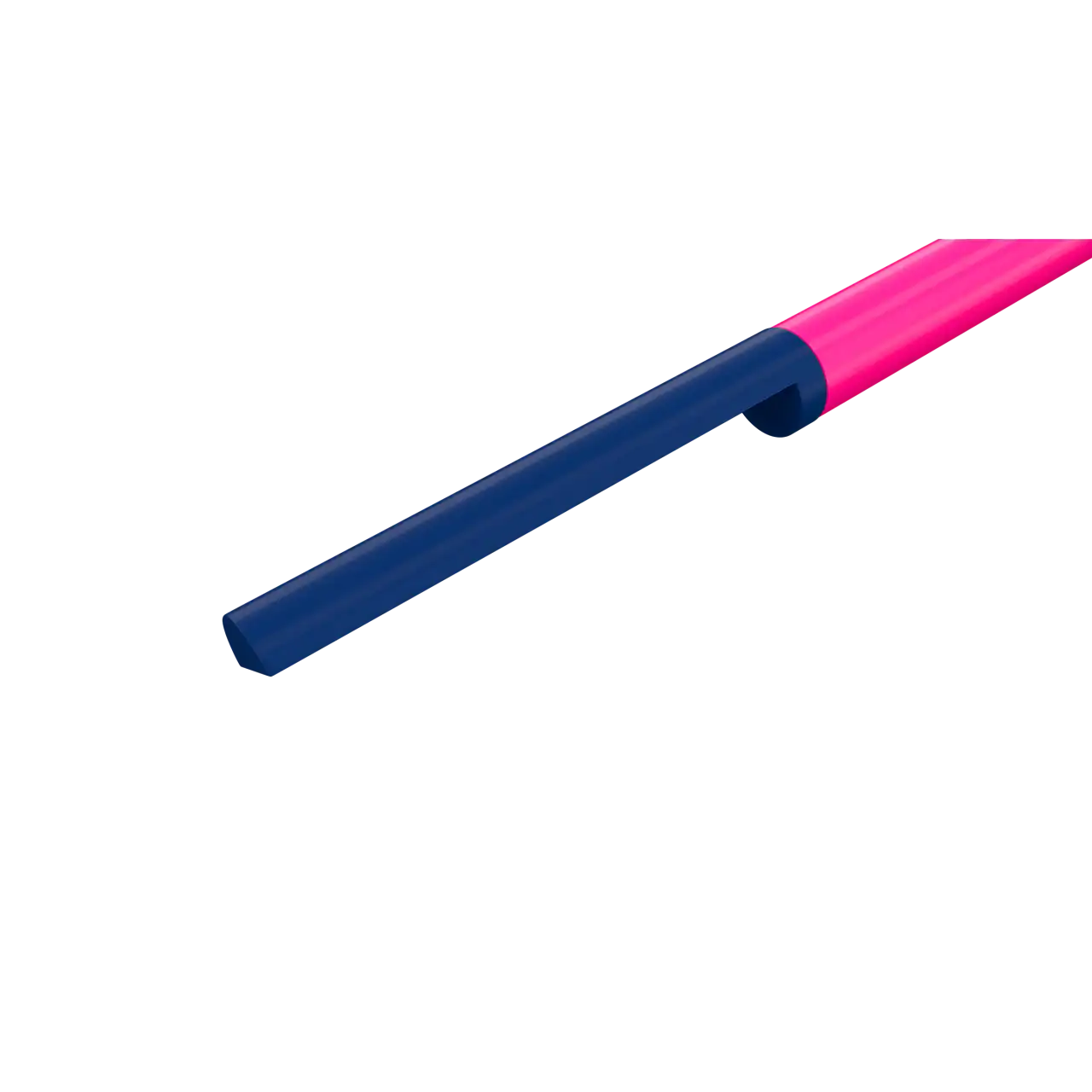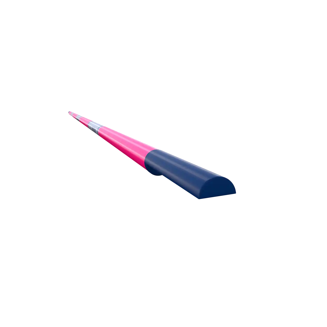 Поперечина для змагань зі стрибків з жердиною з нашими революційними кінцями, що запобігають коченню. Кінці поперечини мають форму півкола. Кінці опускають точку ваги, що робить поперечину набагато більш стабільною та запобігає скочуванню поперечини. Труба трохи важча за звичайні поперечини, які є на ринку.