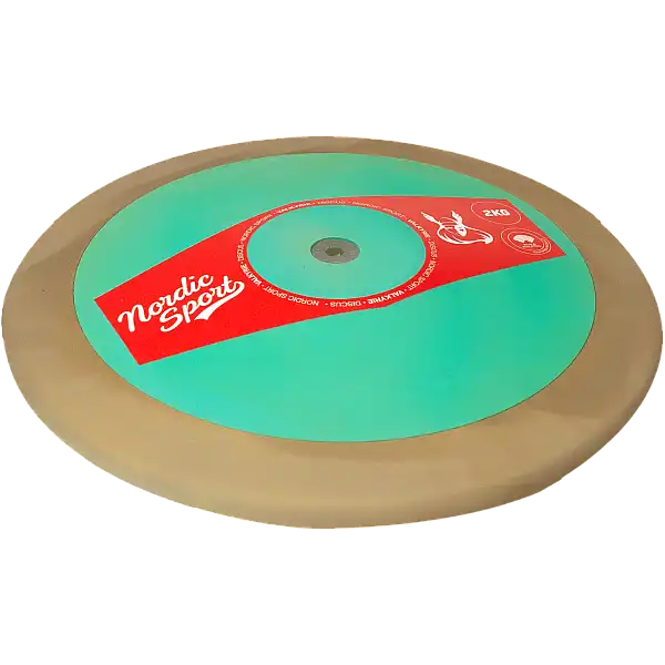 Ультрашвидкий диск для змагань і тренувань, виготовлений із боків із АБС-пластику та обода з латуні, обробленої піскоструминною обробкою, для найкращого зчеплення згідно з міжнародними правилами. «Виготовлено» з прозорим бірюзовим кольором для гарної видимості як у повітрі, так і на землі. Сертифіковано World Athletics.