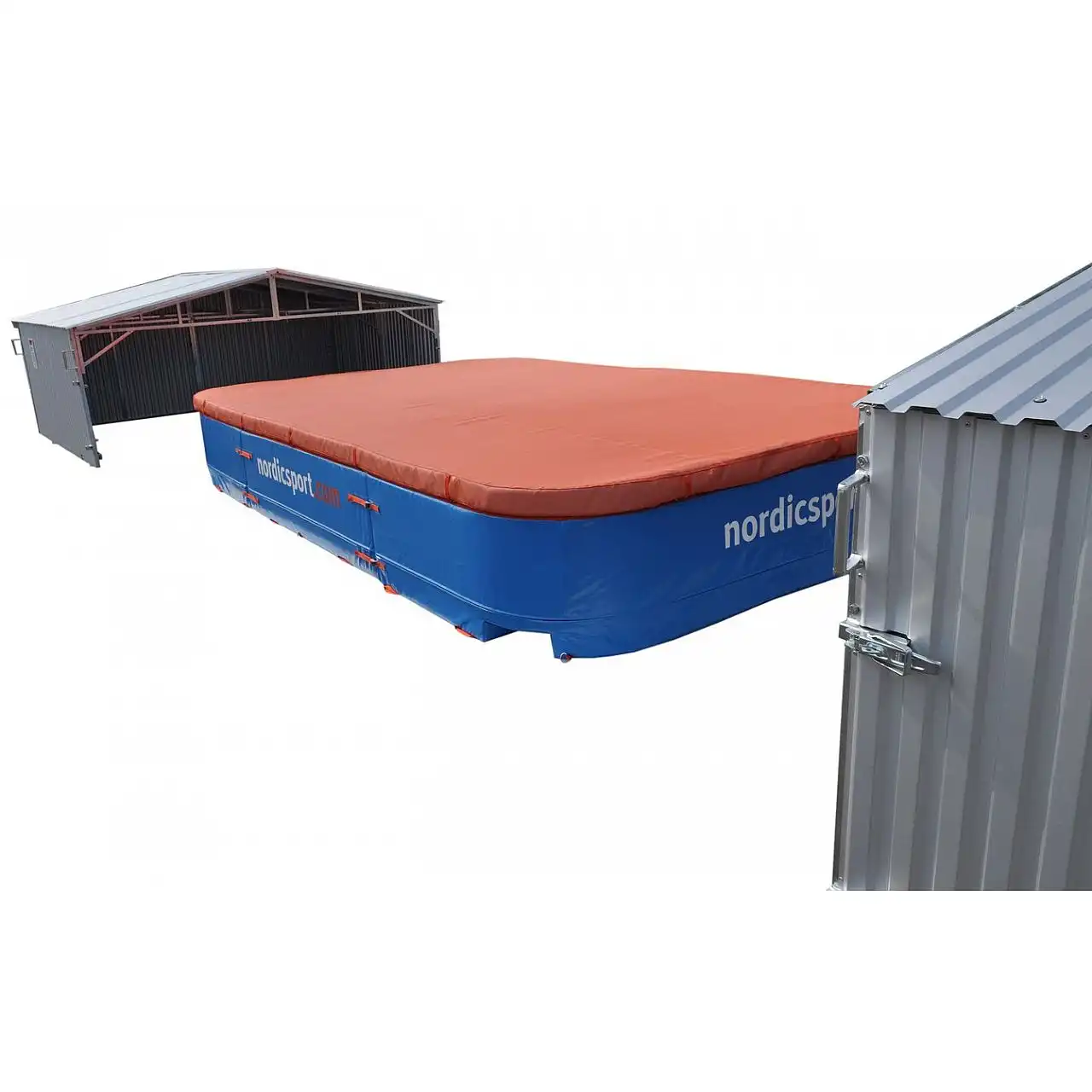 Гараж для приземлення Pit Comp для стрибків у висоту. Найкращий захист ям від дощу, сонця та вандалізму. З міцною металевою рамою, покритою алюмінієвим листом. Легко пересувається з колесами в декількох варіантах на ваш вибір. Доставляє розмонтованим.