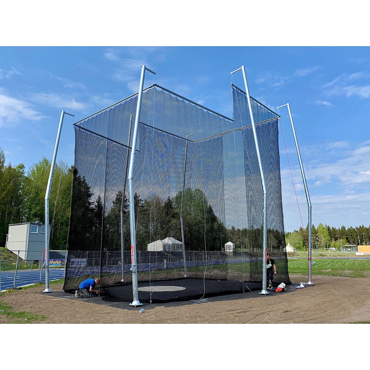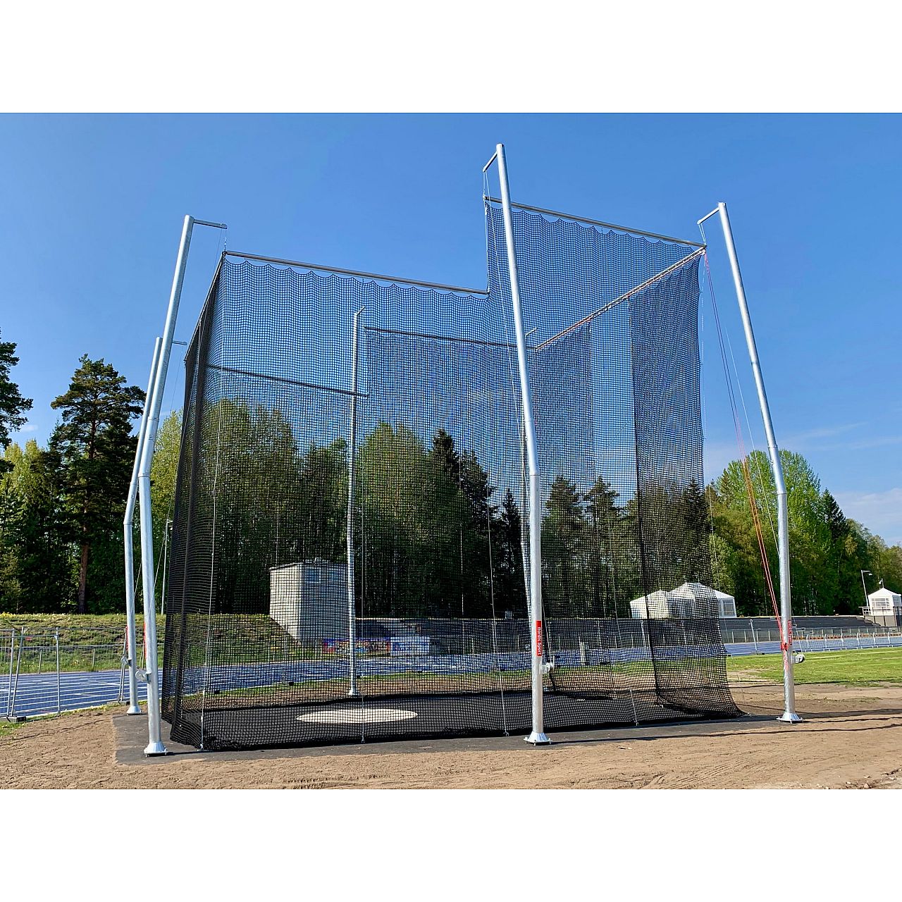 Найбезпечніші у світі клітки для молотів і дисків. За допомогою нашої нової системи завіс можна легко та швидко змінити отвір для праворучного та ліворучного метальника. Висока видимість усередині та назовні завдяки лише 6 полюсам замість традиційних 12 полюсних систем. Відповідає всім міжнародним і національним вимогам. Сертифікат IAAF № E-19-1005.