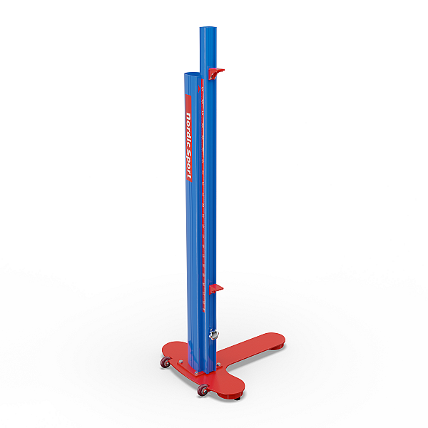 Телескопічні стрибки у висоту, сертифіковані WA, призначені для змагань. Стандарт виготовлений з алюмінію, включаючи ніжку зі сталі з порошковим покриттям і колеса для зручності транспортування. Стандарт також має два тримачі поперечини та мірну стрічку, яку легко читати. Від 50 см до 250 см.