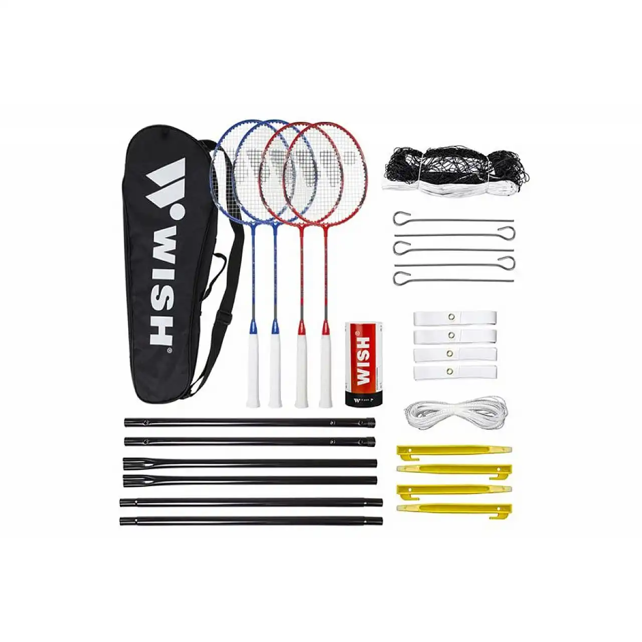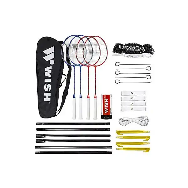 У набір входять 4 ракетки, набір з 3 нейлонових воланів, 2 складних жердини, нейлонова сітка і стрічки для розмітки ігрового поля, тому користувач має все необхідне для початку тренування. Крім того, набір упакований в чохол, що значно полегшує транспортування.
