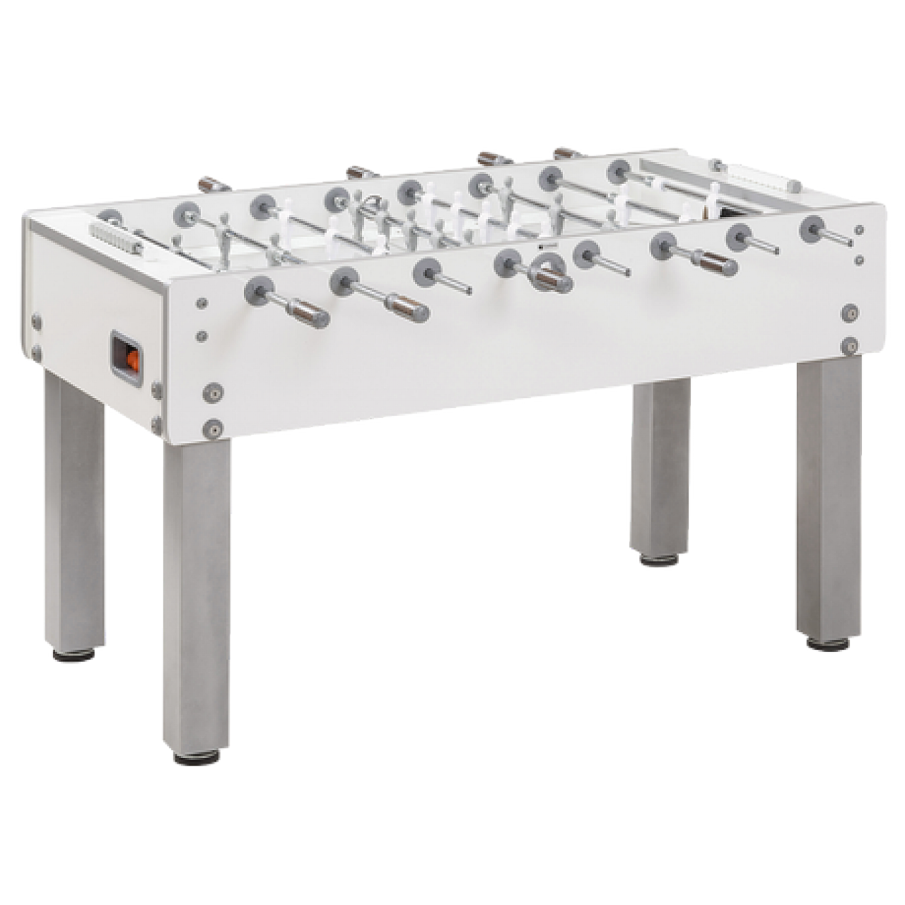 Міцна конструкція, відмінна стійкість та визначні ігрові якості характеризують цей настільний футбол, він може похвалитися стильним дизайном з білим ультрасучасним ефектом. Біло-сірі гравці та біле ігрове поле із сірими лініями підвищують загальне враження елегантності.