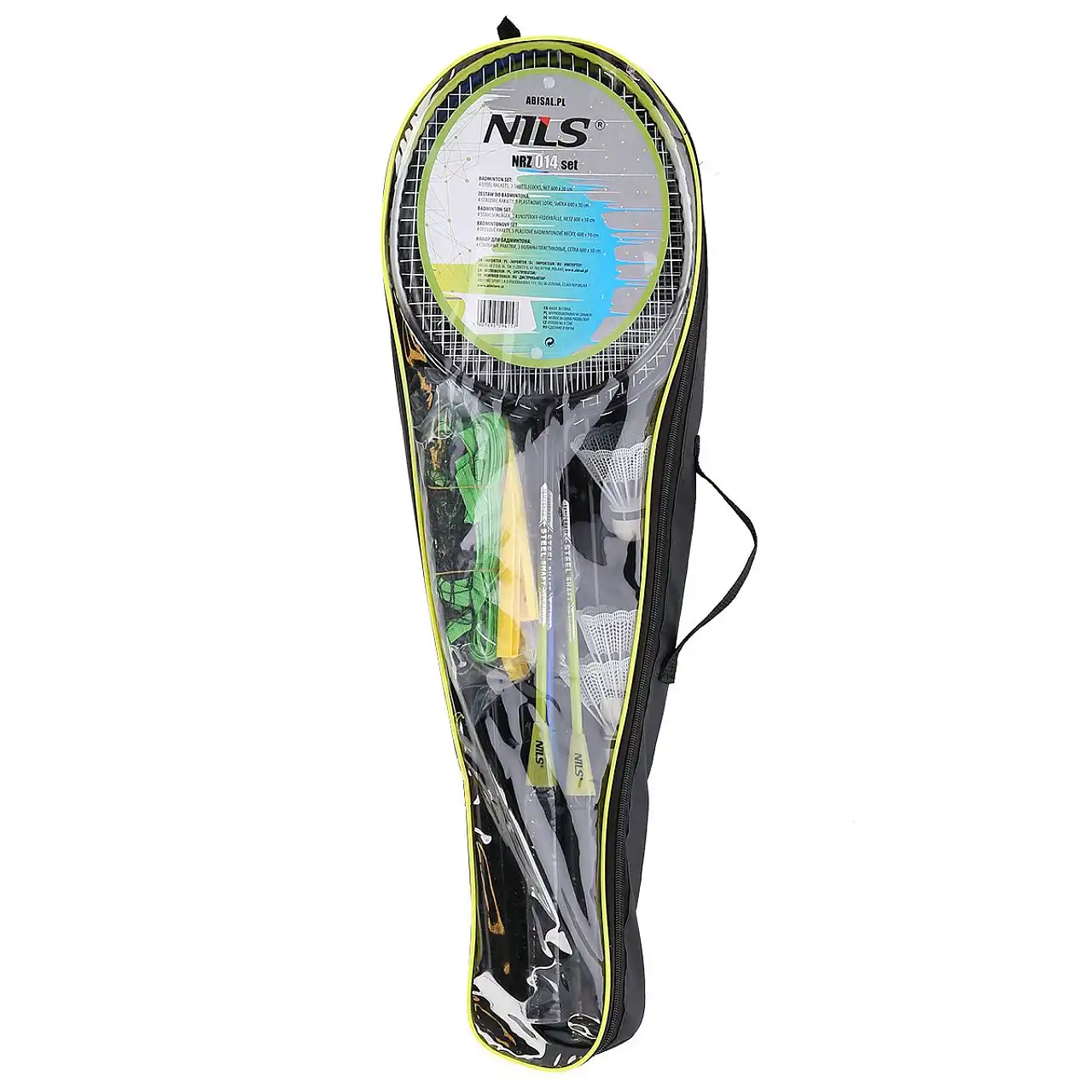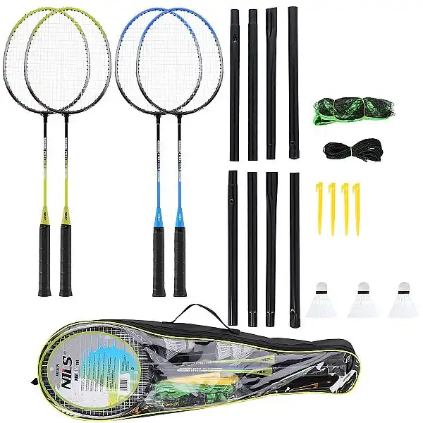 У набір входять 4 ракетки, набір з 3 нейлонових воланів, 2 складних жердини і нейлонова сітка, тому користувач має все необхідне для початку тренування. Крім того, набір упакований в чохол, що значно полегшує транспортування.
