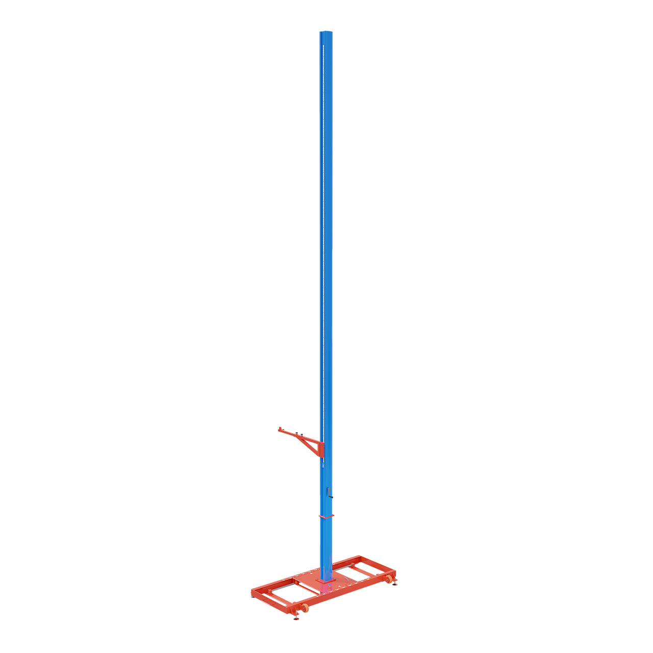 Стійка для стрибків з жердиною виготовлена з основи з нержавіючої сталі та алюмінієвого сплаву. Палицю можна скласти, а положення в складеному стані становить 950 мм від землі. Ручна система підйому, синхронна ремінна передача, кронштейн горизонтальної поперечини можна розширити та відрегулювати, діапазон регулювання кронштейна горизонтальної поперечини становить 570-820 мм від центру полюса. Діапазон висоти підйому становить 1800-6350 мм. Відповідає правилам WA та NCAA.
