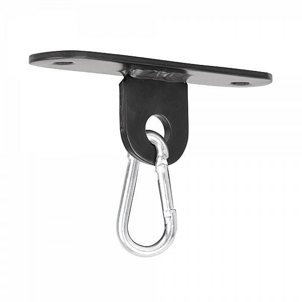 Вішалка для боксерської груші inSPORTline Calderwis призначена для підвішування боксерської груші або підвісних тренажерів до стелі. Елегантний отвір з внутрішнім діаметром 15 мм і карабін дозволяють швидко замінити один тренажер на інший. Він виготовлений із міцної сталі товщиною 4 мм , завдяки чому витримує навантаження до 50 кг . Ви можете легко прикріпити вішалку до стелі за допомогою двох гвинтів (які входять у комплект).
