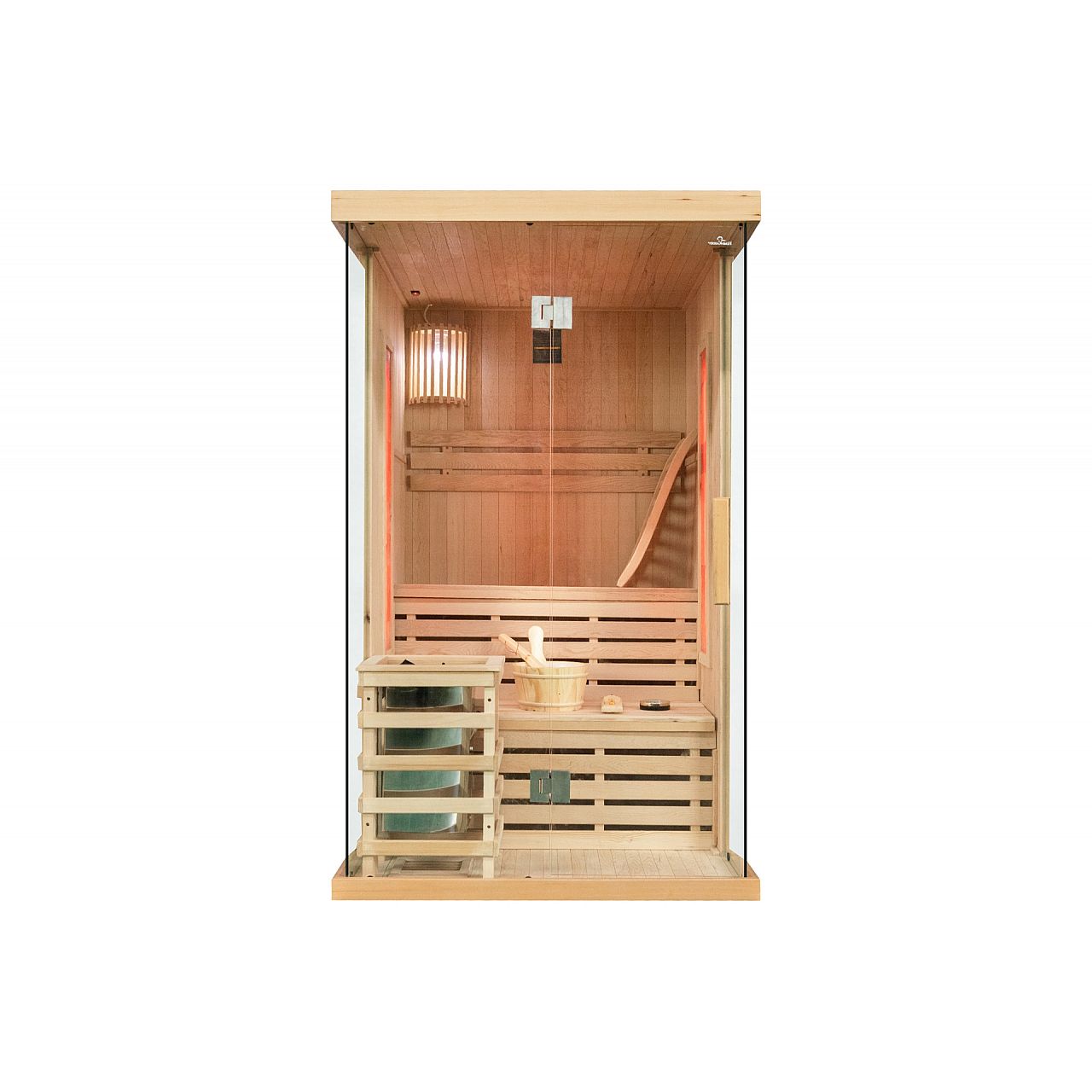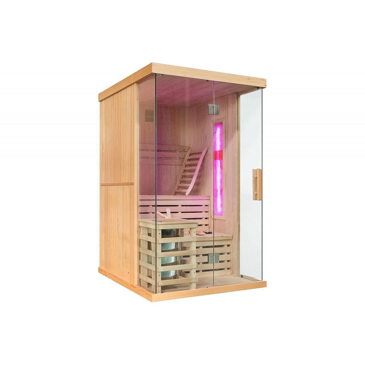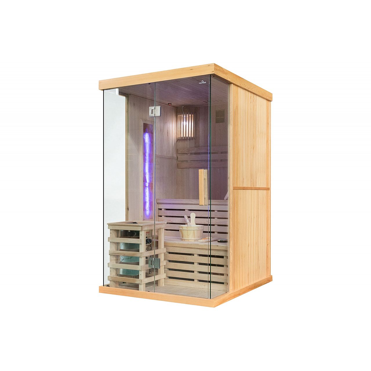 Фінська сауна з канадської ялиці відома своїми корисними властивостями для здоров'я і краси. Він був розроблений з урахуванням зручності використання. Його висота 200 см забезпечує свободу рухів навіть високим людям, дозволяючи повністю розслабитися під час сеансу. Відвідування сауни має багато переваг для краси, особливо для зовнішнього вигляду шкіри. Для фінських саун характерна можливість приймати сухі ванни при високих температурах.