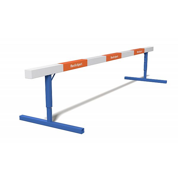 Окремо стоячий біг з перешкодами з міцною ламінованою дерев’яною поперечиною, виготовленою з соснової деревини з півночі Швеції. Внутрішня конструкція зі сталі з порошковим покриттям. Довжина 5,0 м. Регульована висота відповідно до міжнародних норм.
