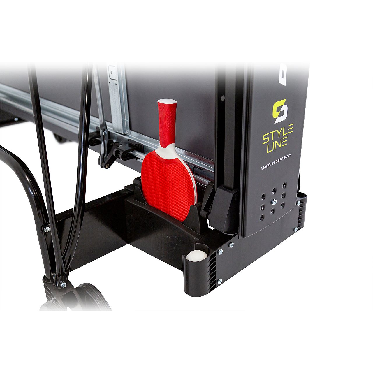 В основі столу розташовані осередки для зберігання ракеток та м'ячів;