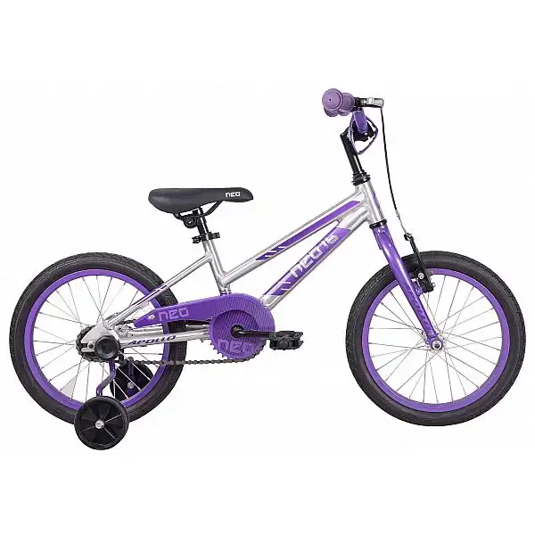 ЛЕГКИЙ І КОМФОРТНИЙ Велосипеди лінійки NEO, від австралійського бренду Apollo, славиться легкою вагою та правильно підібраними комплектуючими, які роблять їзду зручною і безпечною. І дитяча одношвидкісна модель NEO 16, що підходить для юних велосипедистів з ростом 95-117 см, не стала винятком.Apollo NEO 16 - це відмінний байк, який легко розганяється і гальмує за рахунок малої ваги, а також він дуже зручний в керуванні, завдяки продуманій геометрії рами та спеціально підібраним компонентам.РАМА ТА КОМПОНЕНТИРама і вилка зроблені з легкого і міцного алюмінієвого сплаву. Він практично не схильний до корозії та може служити довгі роки.Для додаткового зменшення ваги, стінки труб зроблені тонше в тих місцях, які не відчувають великих навантажень, при цьому жорсткість конструкції залишається такою ж. Рама покрита прозорим лаком, під яким знаходяться яскраві деколі. Кермо, винос і підсідельний штир також виконані з алюмінію, а їх розміри спеціально підібрані, щоб відповідати ширині плечей, а також довжині рук і ніг дитини. Суперкомфортні сідло і гріпси дозволять довго кататися і не втомлюватися. Велосипед комплектується додатковими тренувальними колесами. Вони допоможуть дитині абсолютно безпечно навчитися їзді на велосипеді. А коли крутіння педалей і кермування будуть освоєні, коліщатка можна від'єднати і почати освоювати баланс.ТРАНСМІСІЯ ТА ГАЛЬМАКолеса складаються з алюмінієвих ободів і алюмінієвих втулок, а взуті вони в покришки шириною 1.75'', які відмінно підходять для асфальту і утоптаного ґрунту.За зупинку велосипеда відповідає ножне заднє гальмо, яке дуже просте в освоєнні. Також є додаткове переднє обідне гальмо, що допомагає навчитися використовувати гальмівні ручки на кермі, що б легше перейти на більш дорослі моделі з двома обідними гальмами. Ручка гальма має зменшений важіль, яким дітям набагато зручніше користуватися, ніж класичними ручками. Трансмісія має всього одну швидкість. Це дозволить швидше навчитися повертати, гальмувати і тримати рівновагу на велосипеді, не відволікаючись на перемикачі та не ризикуючи пошкодити їх у разі падіння. Співвідношення передньої та задньої зірки підбиралось так, що б дитина могла легко стартувати без сторонньої допомоги. Для захисту одягу від забруднення ланцюговим мастилом і зажовування в трансмісію, на велосипед встановлений спеціальний кожух. Педалі для велосипеда відповідають дитячому розміру ноги.