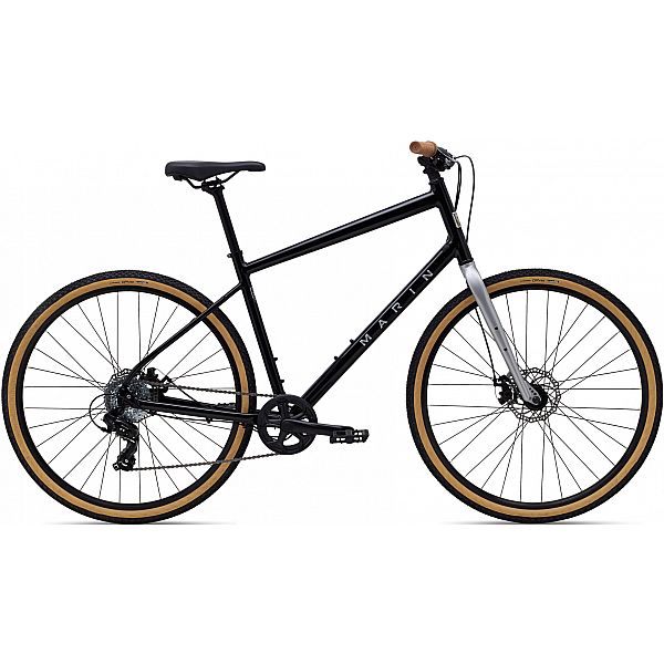 ГІБРИДНИЙ ВЕЛОСИПЕД ВІД ОДНІЄЇ З НАЙДОСВІДЧЕНІШИХ ВЕЛОСИПЕДНИХ КОМПАНІЙ Каліфорнійці Marin Bikes починали як виробник гірських велосипедів ще у 80-х, беручи активну участь у змаганнях. Тому досвід створення швидких, динамічних і жвавих велосипедів їм не позичати. І весь цей досвід вони застосували при створенні лінійки міських байків Kentfield. Він поєднує в собі посадку гірського велосипеда зі швидкістю асфальтових моделей, дозволяючи мчати по міських вулицях, перестрибуючи лежачих поліцейських і різко змінюючи напрямок.Тим же, кому більш до вподоби їздау по заміських дорогах та прогулянки парковим стежками, сподобається передбачуване керування велосипеда, широкі та чіпкі покришки, а такожо навісне обладнання, як у гірських байків.РАМА ТА ВИЛКАГеометрію взяли від класичних крос-кантрійників, що дозволяє легко керувати велосипедом на будь-якій швидкості, а також це дає відмінний огляд.Матеріалом для рами був обраний алюмінієвий сплав 6061 Series 1. Це дуже міцний і легкий матеріал, він практично не схильний до корозії та відмінно справляється зі скручующими навантаженнями, дозволяючи без втрат передавати енергію педалювання від педалей до коліс. Вилку зробили зі сталі, оскільки вона краще поглинає дрібну тряску від дорожнього полотна, не даючи рукам втомлюватися при тривалій їзді. Дропаути у вилки зробили в стилі BMX велосипедів. Проводку сховали всередину рами, що б зменшити ймовірність її ушкодження і полегшити чистку велосипеда після їзди в дощову погоду. До того ж це робить зовнішній вигляд набагато привабливіше. Рама і вилка мають кріплення для повнорозмірних крил, підніжки, багажників, фляг для води, насоса та інших аксесуарів. КОМПЛЕКТАЦІЯ Ободи коліс виготовлені з двостінного алюмінієвого профілю, що додає їм міцності.Покришки GPVee 700Сх40 створені в колаборації Vee Tire і Marin Bikes. Протектор має універсальний малюнок, який підходить для будь-якого типу покриття, а також захист від проколів. Трансмісія початкового рівня Shimano Tourney на 7 передач дозволяє швидко їхати по рівних ділянках і легко підніматися на пагорби. Попереду велосипед має 1 зірку на 38 зуба, а ззаду 7 з касетою на 11-34 зубів. Таке співвідношення відмінно підходить для міської їзди у рівнинній місцевості.Відсутність переднього перемикача значно зменшує загальну вагу велосипеда, а заміна трійника з величезною зіркою на шатуни з однією ще й покращує прохідність велосипеда, за рахунок збільшеного кліренсу. За зупинку відповідають механічні дискові гальма. Вони безвідмовно працюють у будь-яку погоду і в будь-який час року, при цьому можуть похвалитися гарною ремонтопридатністю і нехитрим обслуговуванням.
