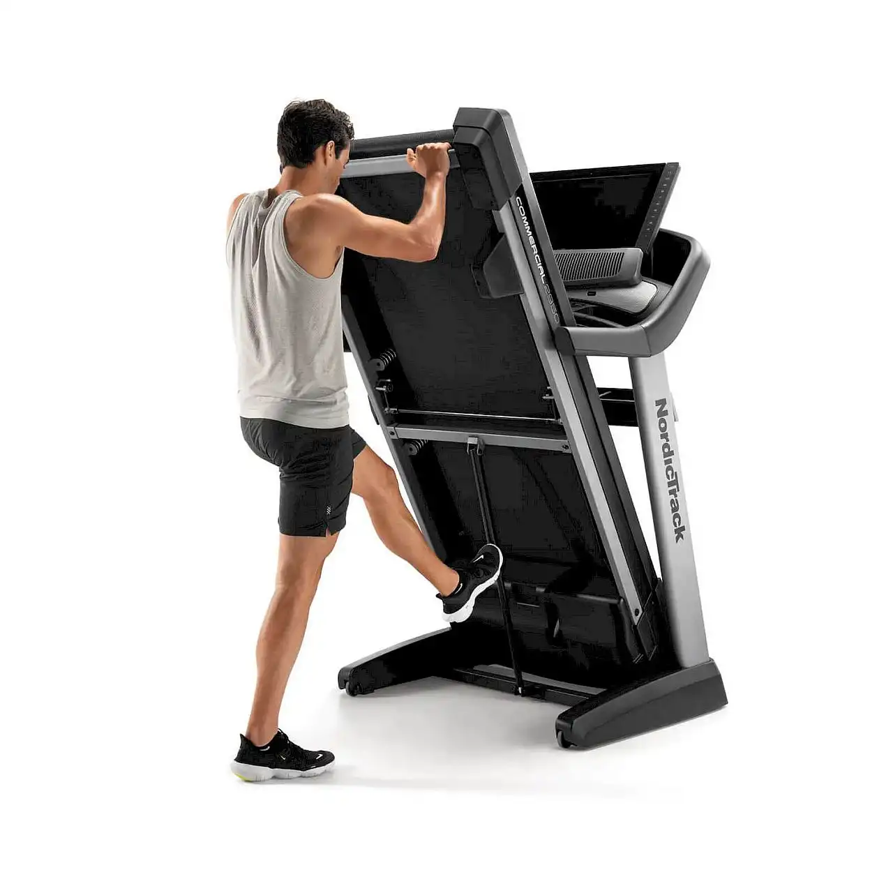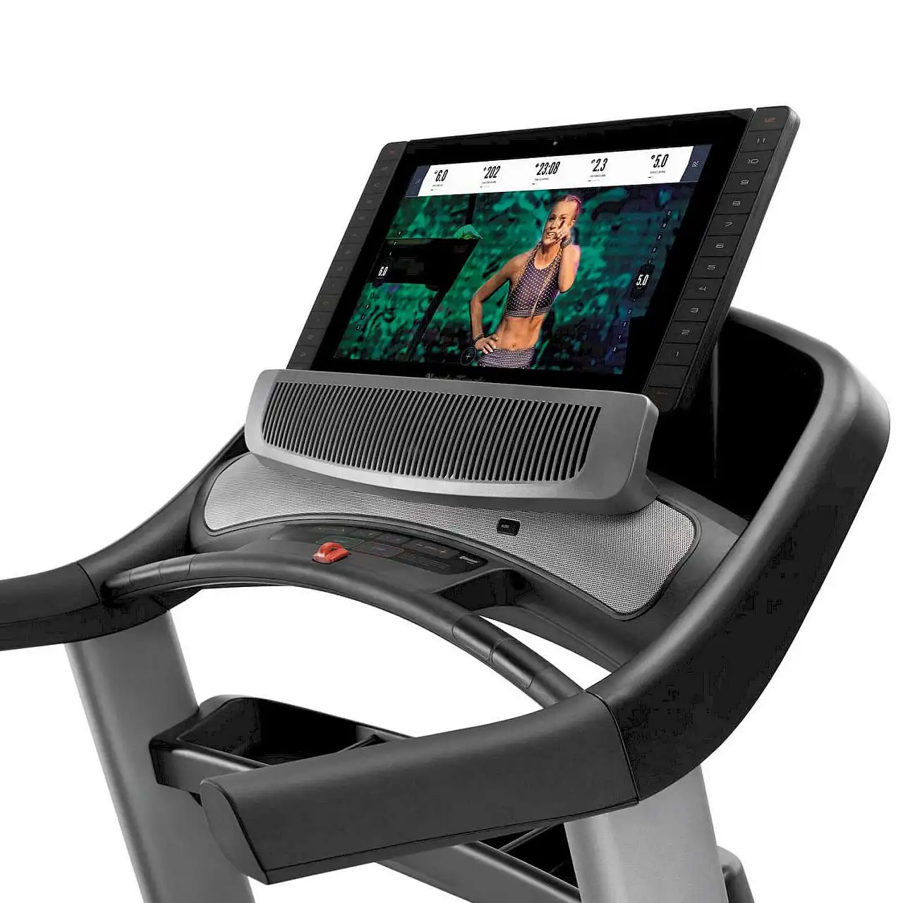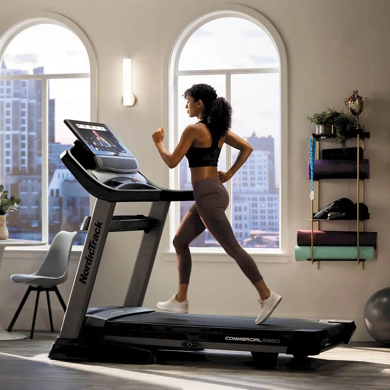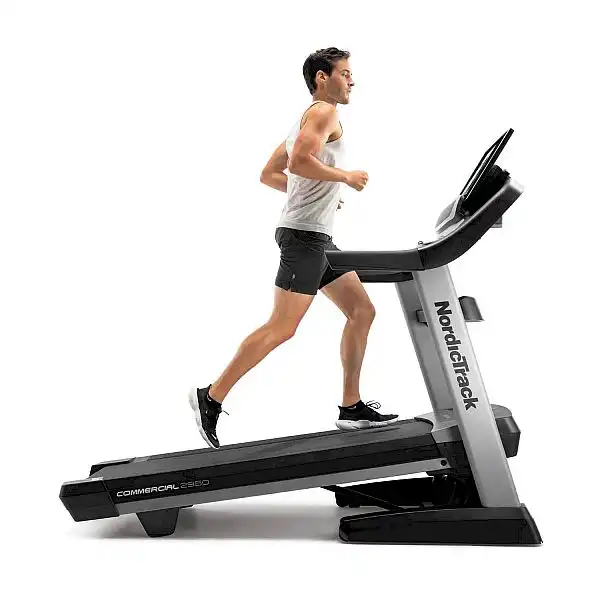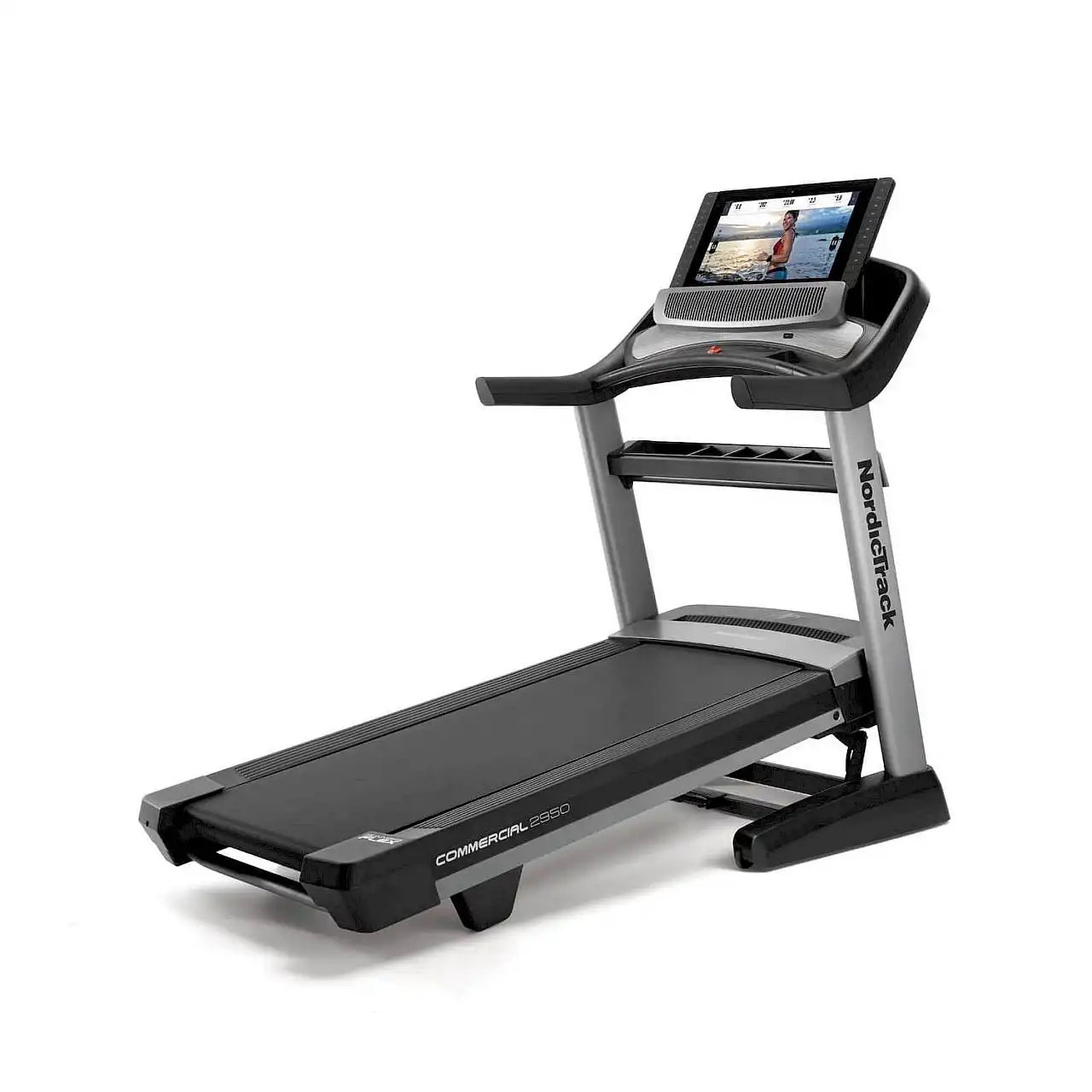 Електрична бігова доріжка NordicTrack® Commercial 2950 — міцна, міцна та технологічно передова бігова доріжка для домашнього використання. Він оснащений з потужним двигуном, широким діапазоном регулювання кута нахилу в двох площинах, широким біговим полотном, вентилятором AutoBreeze™, що автоматично керується в залежності від швидкості, з якою біжить користувач. 22 - дюймовий кольоровий сенсорний екран , який контролює параметри тренувань і дозволяє вибирати програми тренувань, сумісні з системою iFit®, вдосконалена система амортизації RUNNERSFlex™ , що зменшує втому та напругу суглобів, аудіопорт і звукова система відрізняють бігову доріжку від інших доступних. на ринку.