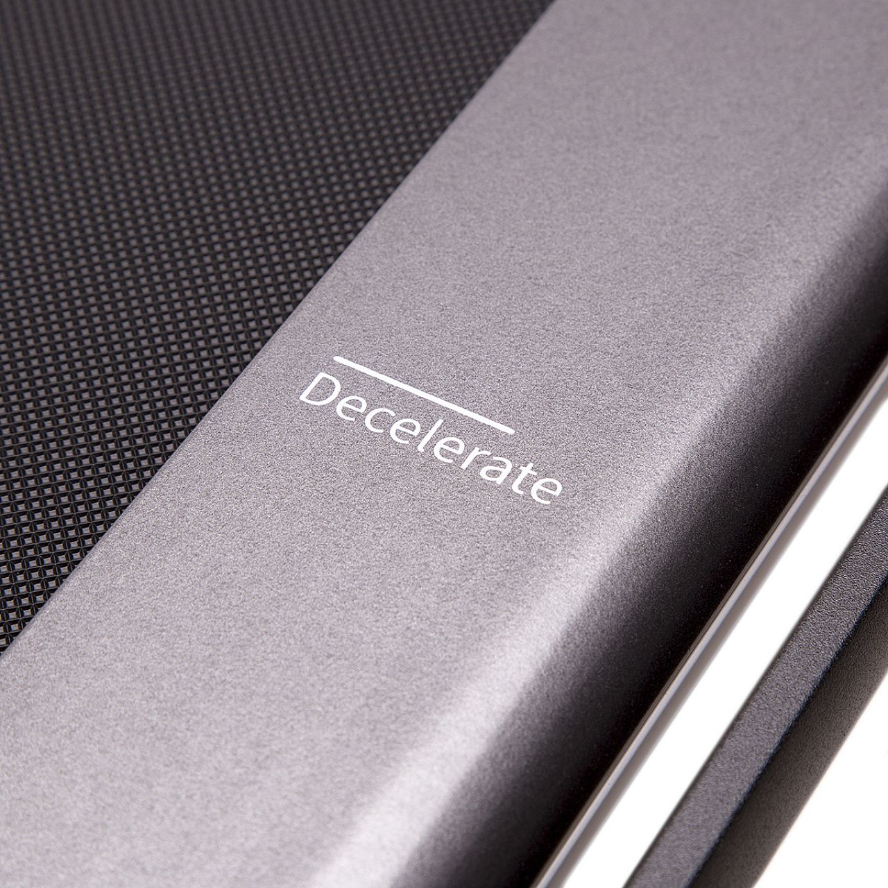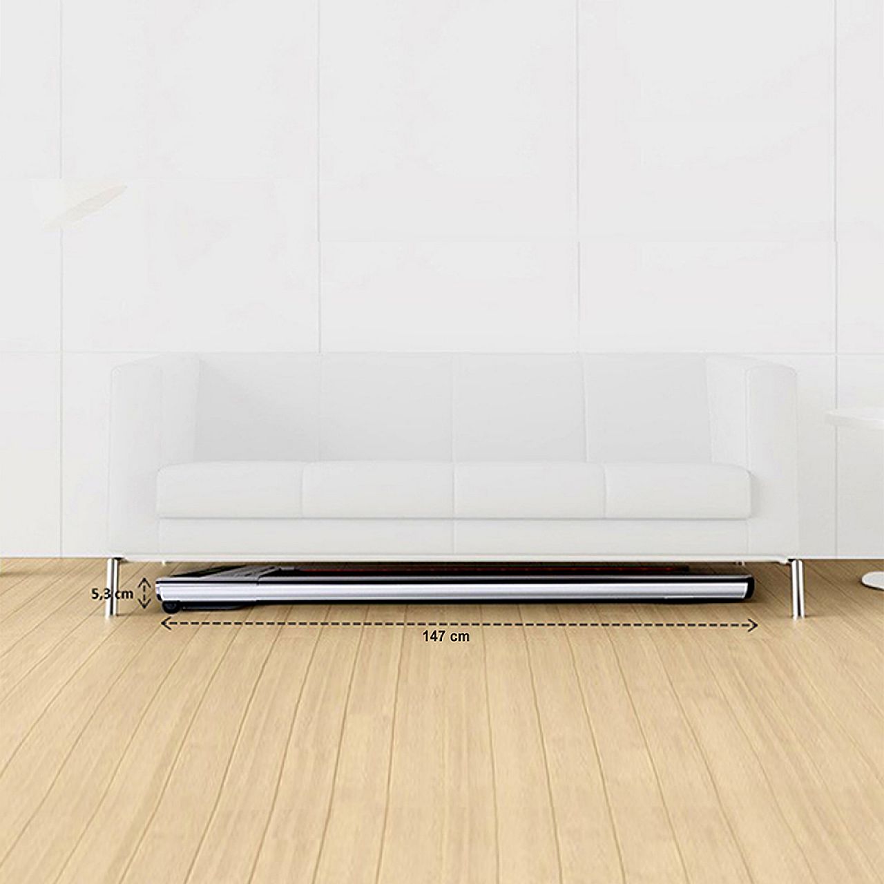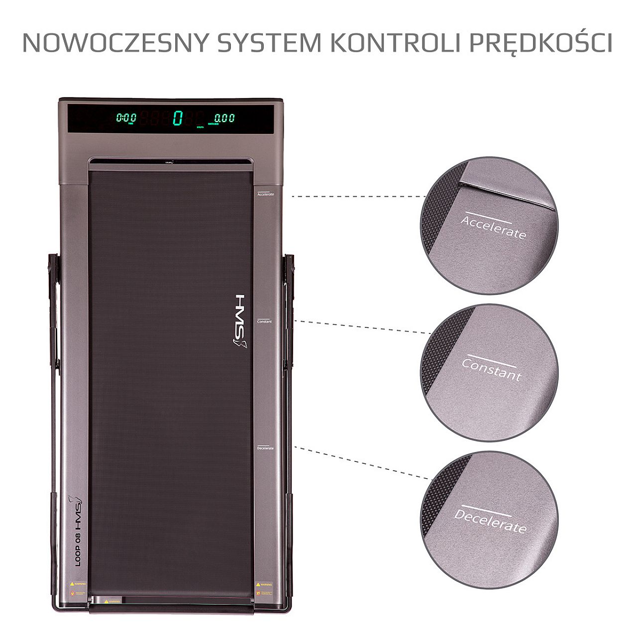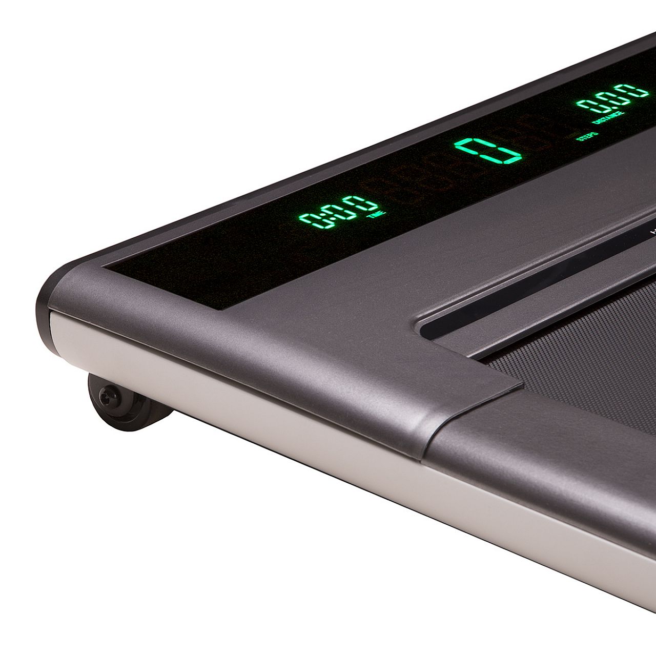Має інтуїтивно зрозумілу систему запуску тренувань і сучасну систему контролю швидкості. Просто ступіть на бігове полотно, щоб увімкнути це дивовижне обладнання. Коли ви підійдете ближче до дисплея, швидкість збільшиться, але ближче до задньої частини бігової доріжки швидкість зменшиться. Дисплей інформує про дистанцію, час тренування та кількість пройдених кроків. Модель дуже тиха, рівень шуму всього 65 дБ.