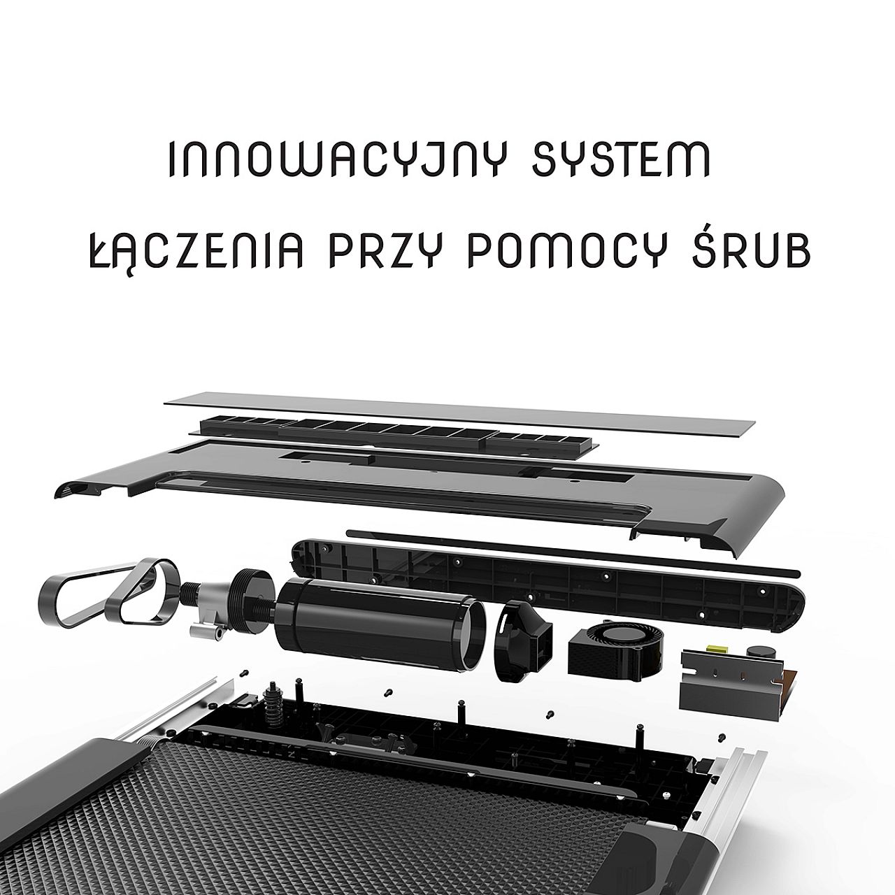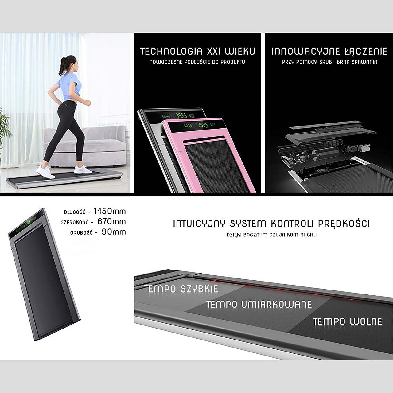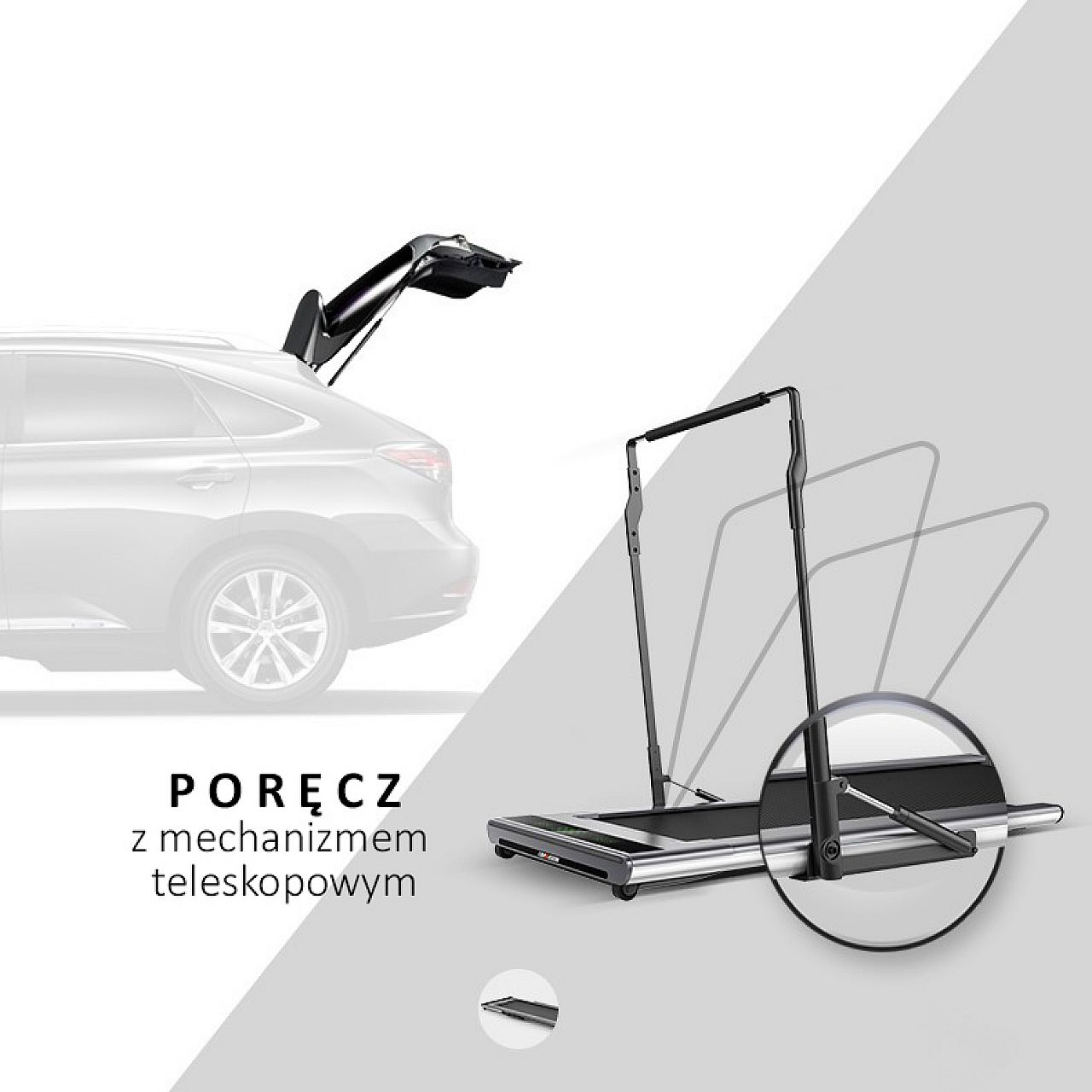 Бігова доріжка використовує інноваційну систему гвинтового з’єднання. Додатковою перевагою є система амортизації ударів під час бігу. Поручень, встановлений в біговій доріжці, гарантує безпеку і додатковий комфорт під час швидкого бігу. Робота поручнів заснована на телескопічному механізмі, який встановлює поручень у відповідне положення і запобігає його неконтрольоване опускання.