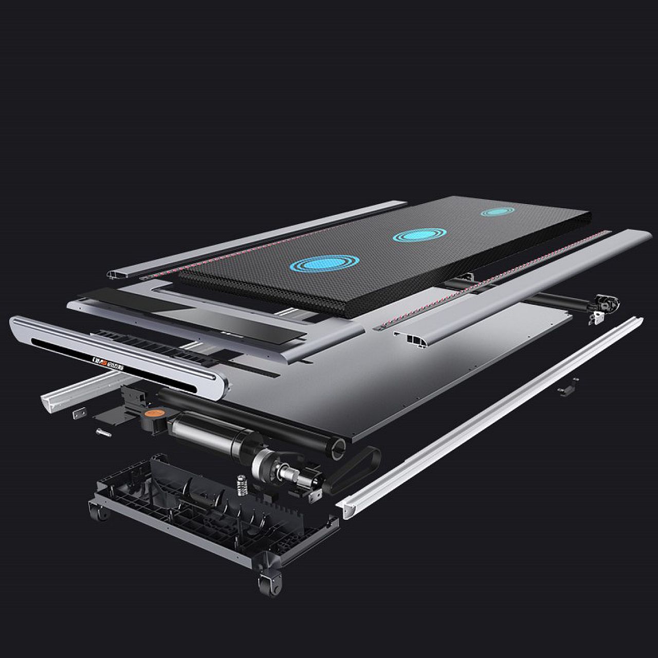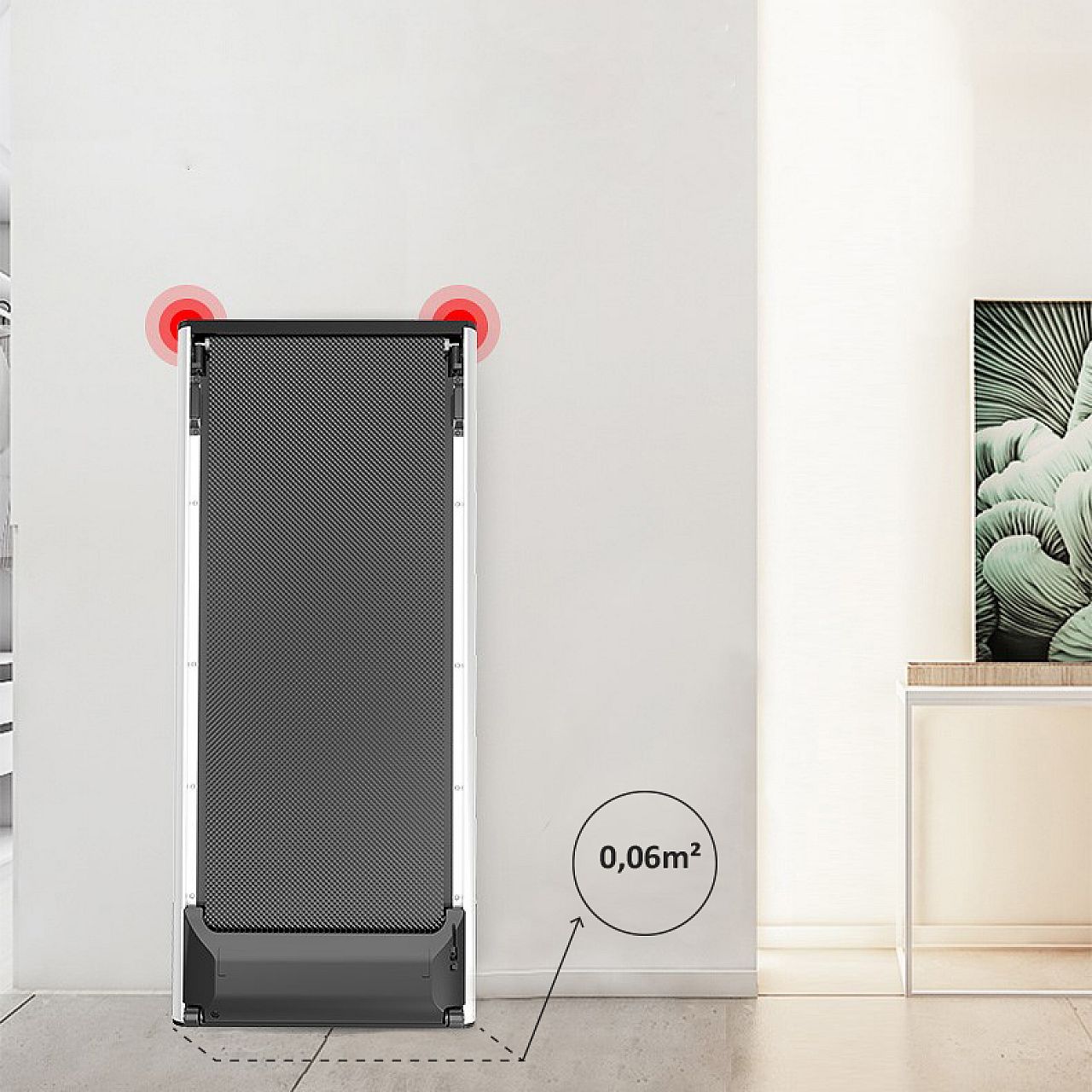 Бігова доріжкаLOOP08- це технологія 21 століття, сучасна, легка та інтуїтивно зрозуміла у використанні. Використовуючи дизайн сучасних мобільних телефонів, бігова доріжка була розроблена в найбільш елегантній формі, тонкій основі з вбудованим цифровим дисплеєм - без верхньої рами, великого комп'ютера та підлокітників. При вертикальному розміщенні бігова доріжка займає лише 0,06 м2 простору.LOOP08дуже легкий і зручний, що дозволяє легко транспортувати та зберігати будь-де.