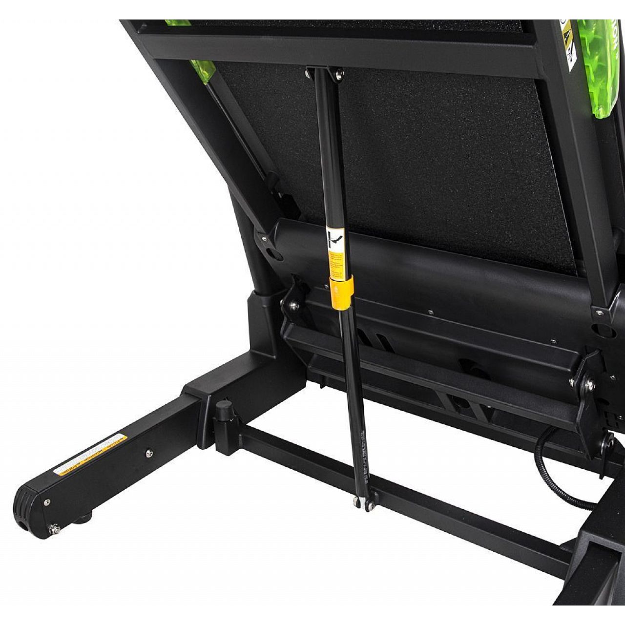 Незважаючи на те, що бігове полотно з підвіскою досить велике, бігова доріжка не займе багато місця. Завдяки складаній рамі та колесам ви можете скласти бігову доріжку, коли закінчите, та прибрати її!