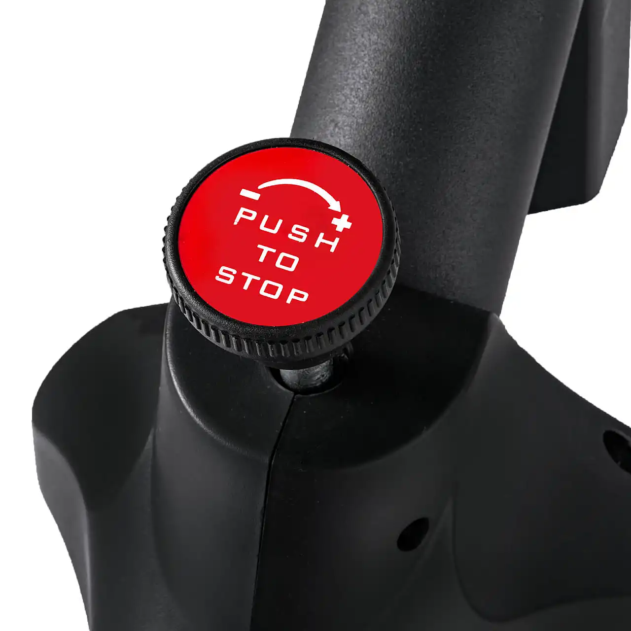 На рамі є ручка, за допомогою якої можна вирівнювати навантаження. Якщо потрібно зупинитися, просто натисніть на неї і колесо перестане крутитися. Простота цього механізму забезпечує максимальну безпеку під час водіння. На педалях є регульовані велосипедні кошики. В результаті під час керування працює більше м'язів.