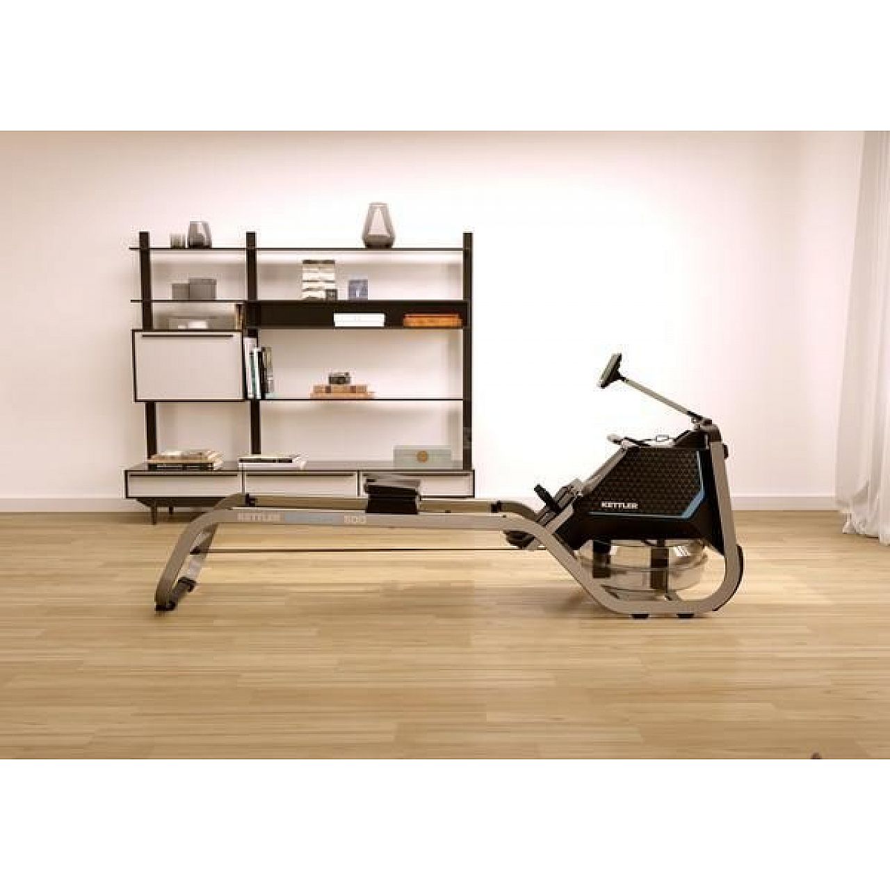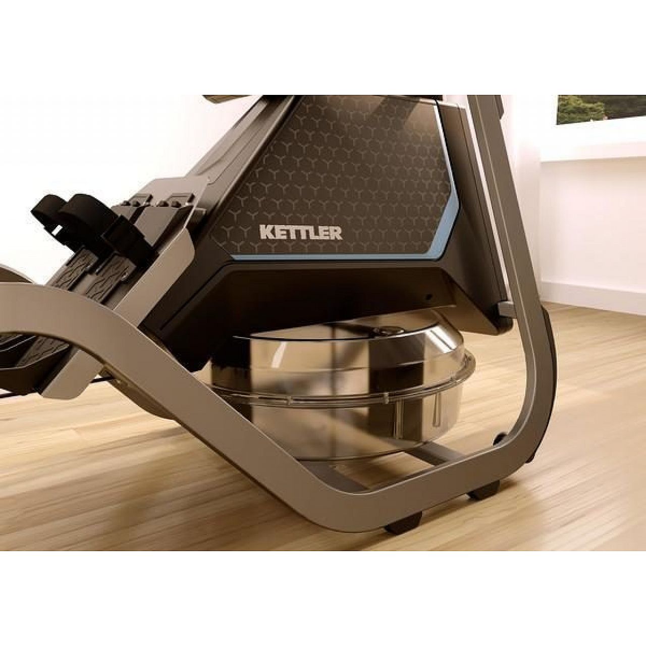 KETTLER REGATTA 500 - це водний ергометр, в якому сила опору створюється водою, що знаходиться в баку . Рівень опору залежить від темпу веслування та кількості води у баку. Він може бути до 12 літрів . Рівень опору залежить виключно від інтенсивності тренування – чим швидше гребки, тим більший опір води, що крутиться у резервуарі.