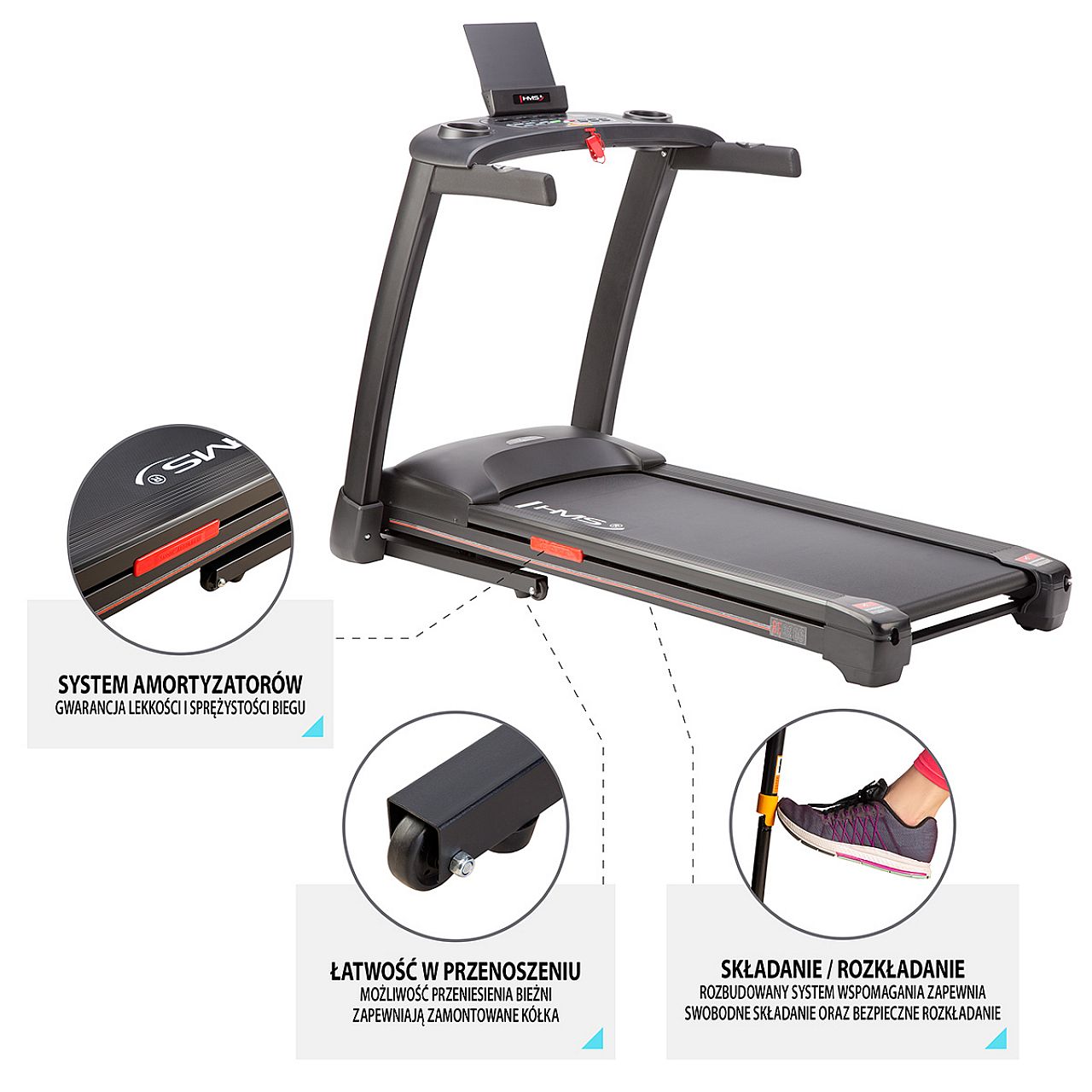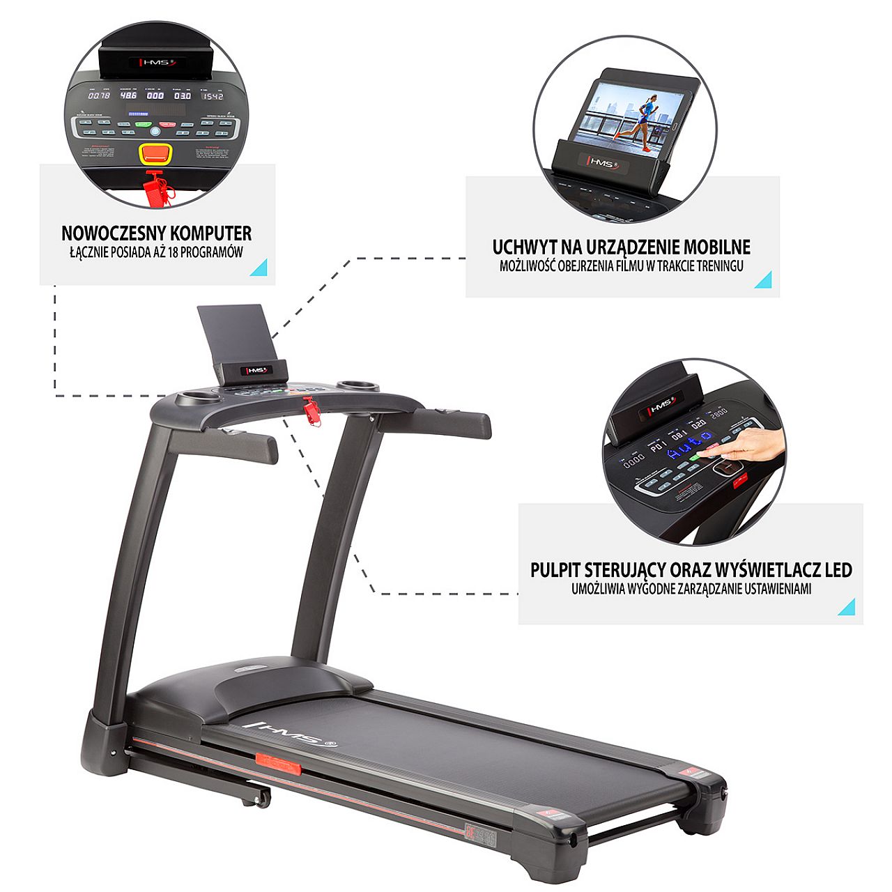Усі компоненти бігової доріжки BE3200 HMS роблять її ідеальним пристроєм для кардіотренувань вдома.