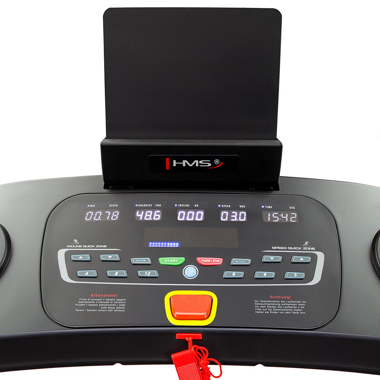 Основні характеристики | Додаткові характеристики:Живлення: 220 Ключ безпеки, Показання дисплея:Дисплей показує: час,відстань,швидкість,пульс,калорії,кількість ступенів, Програми:Кількість вбудованих навчальних програм: 18 Загальна кількість програм: 21 HRC |