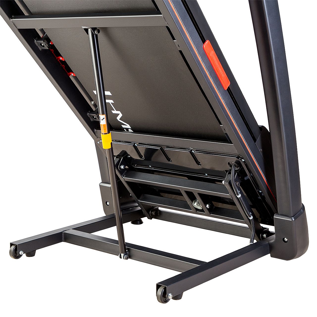 Конструкція бігової доріжки забезпечує комфортний простір для занять, а система амортизаторів гарантує легкість і еластичність бігу. Для створення бігової доріжки використовувалися матеріали найвищої якості, що гарантує довгі роки використання.