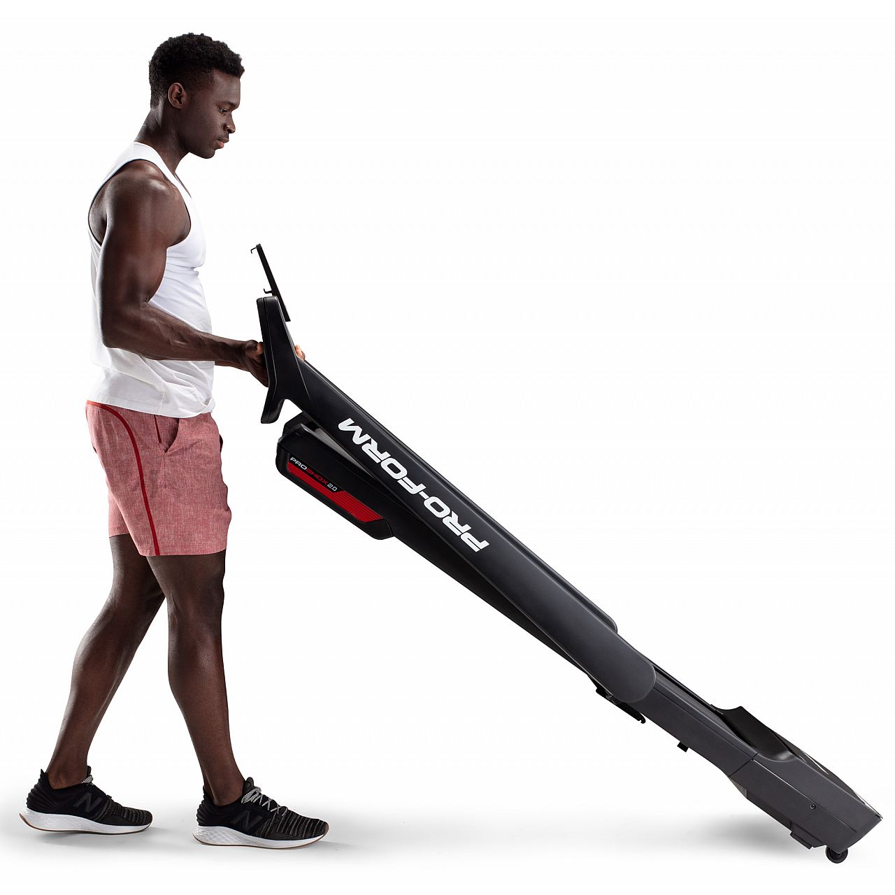 Доріжка займає мало місця під час тренування та при горизонтальному зберіганні, легко та швидко складається після тренування. Транспортувальні ролики дозволяють без зайвих зусиль перемістити доріжку у потрібне місце. Бігове полотно обладнане системою амортизації ProShox, яка зменшить навантаження на суглоби. А яскравий та контрастний 5" LCD-екран ідеально підходить для відстеження всіх основних параметрів тренування.