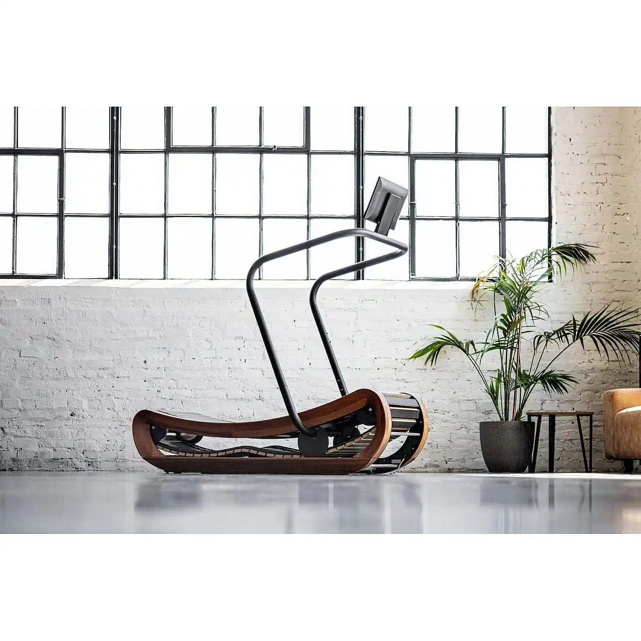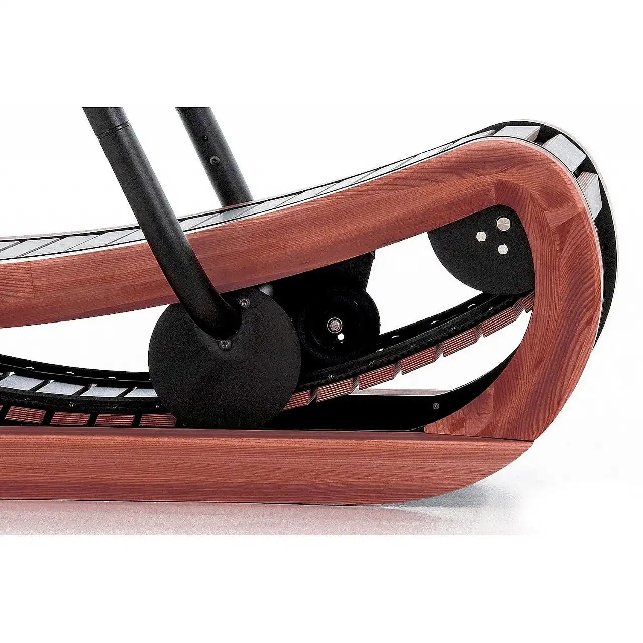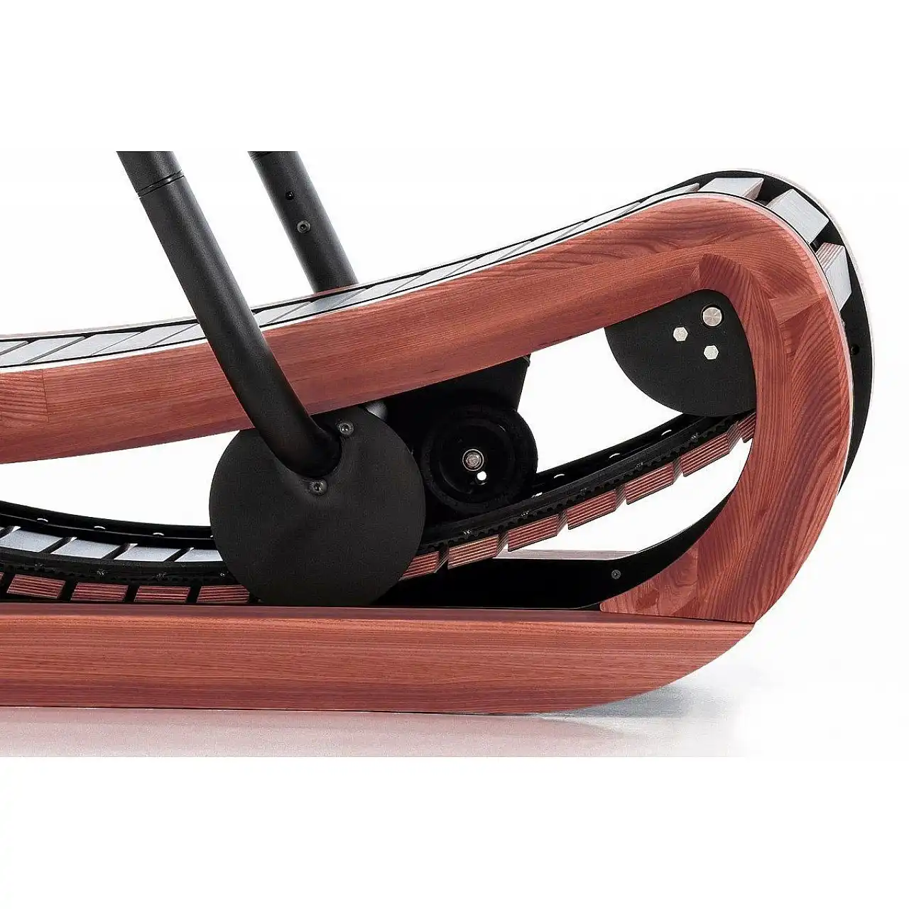 Вигнута форма бігової доріжки пропонує користувачам усі переваги ручної роботи. Полотно для бігу складається з гнучких дерев'яних планок і прецизійних шарикопідшипників і рухається виключно ногами користувача .