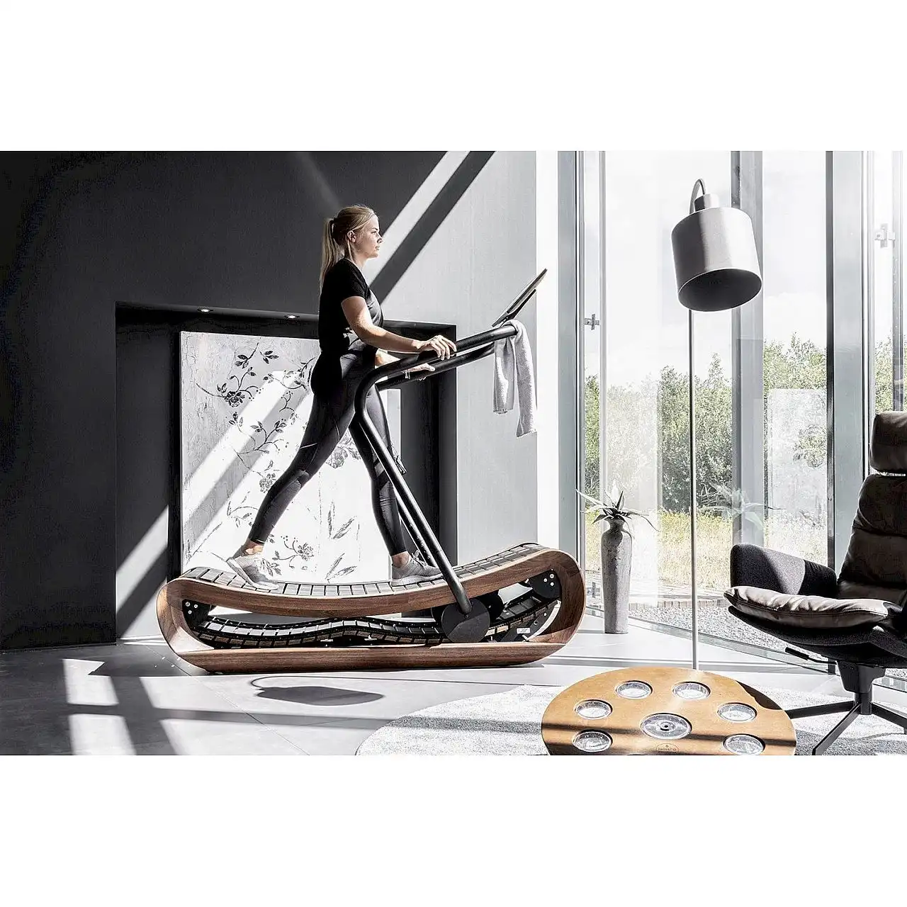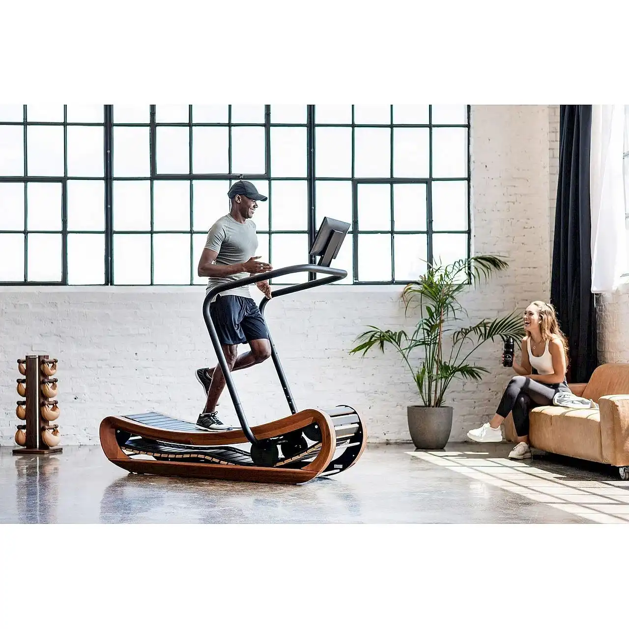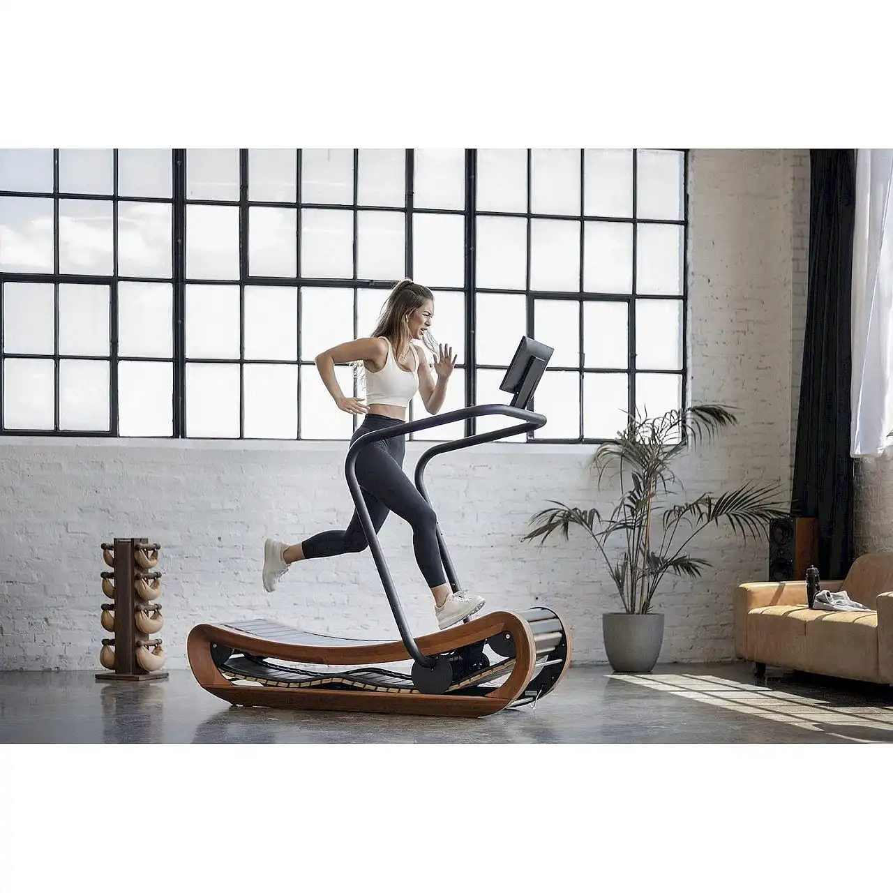 Вигнута форма бігової доріжки пропонує користувачам усі переваги ручної роботи. Полотно для бігу складається з гнучких дерев'яних планок і прецизійних шарикопідшипників і рухається виключно ногами користувача .