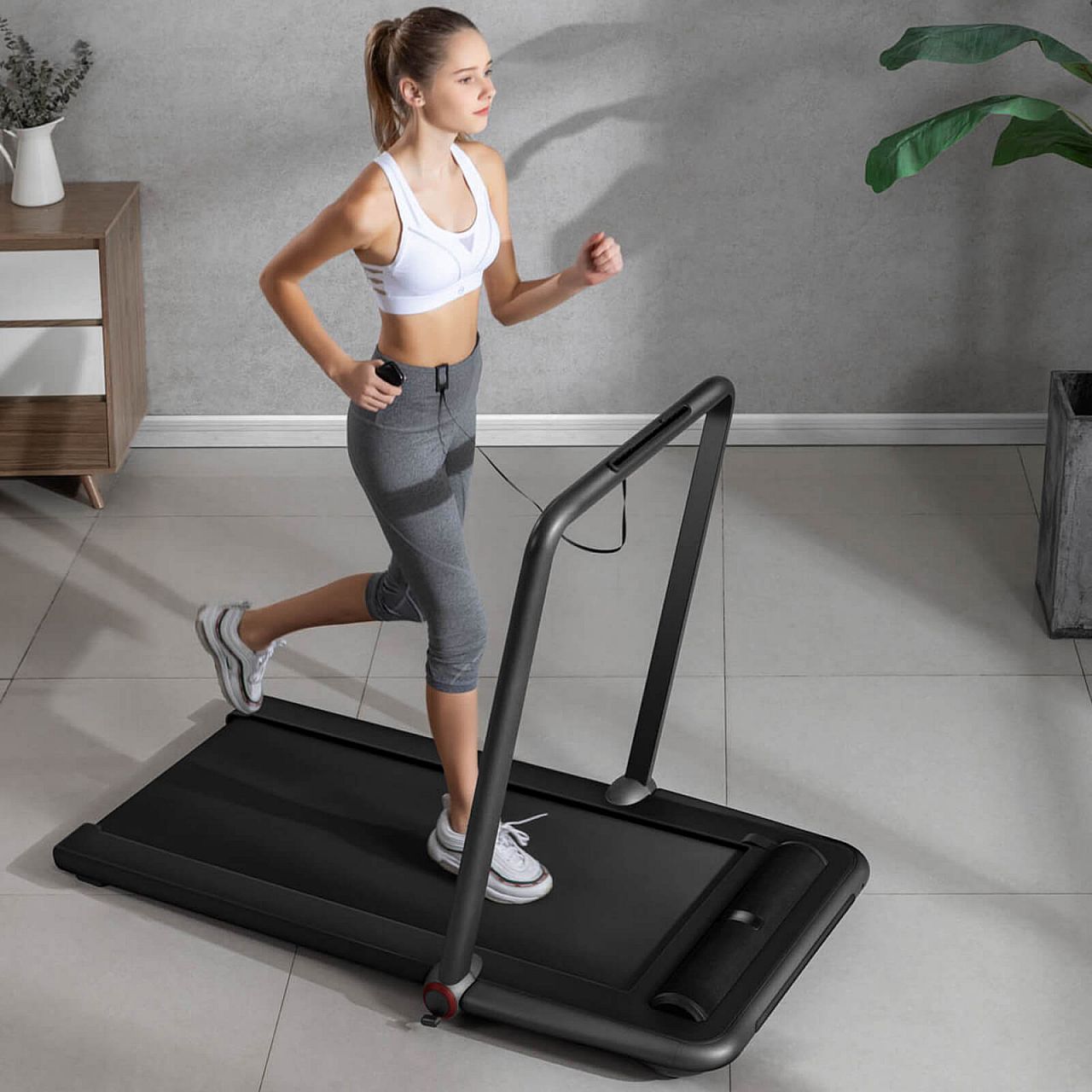 Платформу можна використовувати двома способами. На плоскій біговій доріжці ви можете неквапливо гуляти будь-де вашого будинку. У цій конфігурації обладнання розвиватиме максимальну швидкість 6 км/год, що еквівалентно темпу інтенсивного походу. Однак, якщо ви хочете трохи прискоритися або відчути себе стійкіше на платформі, просто підніміть ручку зі штангою. Це налаштування дозволяє розвивати швидкість до 12 км/год.