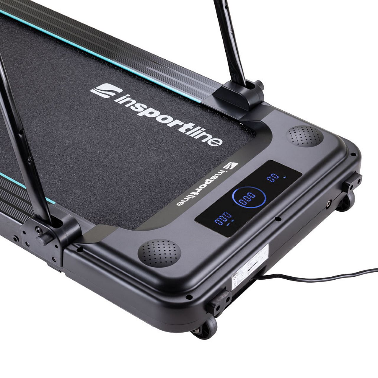Бігова доріжка inSPORTline Tyrion розроблена для комфортного домашнього тренування без відволікаючих факторів. Таким чином їм дуже легко користуватися. Єдине, що вам потрібно встановити, це швидкість ( 1-8 км/год ). Світлодіодний дисплей, що легко читається, показує час, відстань, швидкість і спалені калорії . Підлогові ролики дозволять вам легко переміщати бігову доріжку з одного місця до іншого, а підставка ззаду дозволяє складати її у вертикальному положенні.