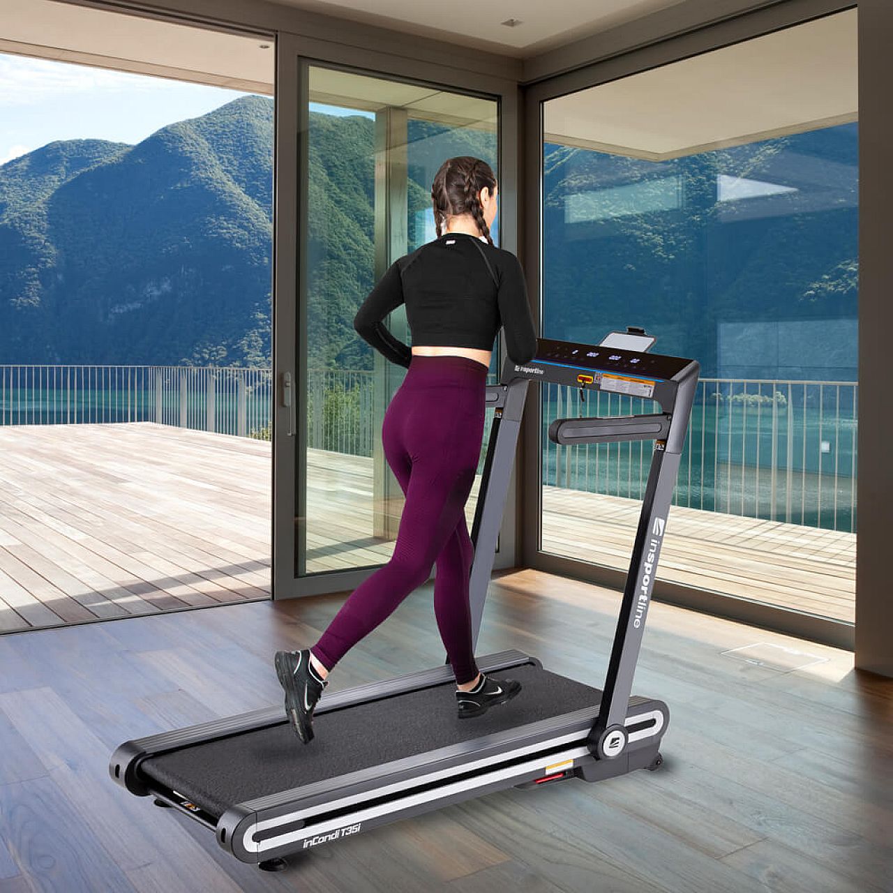 Бігова доріжка inSPORTline inCondi T35i - це елегантна домашня бігова доріжка, яка впишеться прямо у вашу квартиру та забезпечить ефективне кардіо-тренування для кожного члена сім'ї. Завдяки обмеженню ваги в 120 кг і робочій зоні підвіски він пропонує достатньо місця для бігу. Однак завдяки складаній рамі він не займає багато місця, коли він не використовується. Використовуючи світлодіодний екран з підсвічуванням, ви можете налаштувати тренування або вибрати одну з 12 встановлених програм .