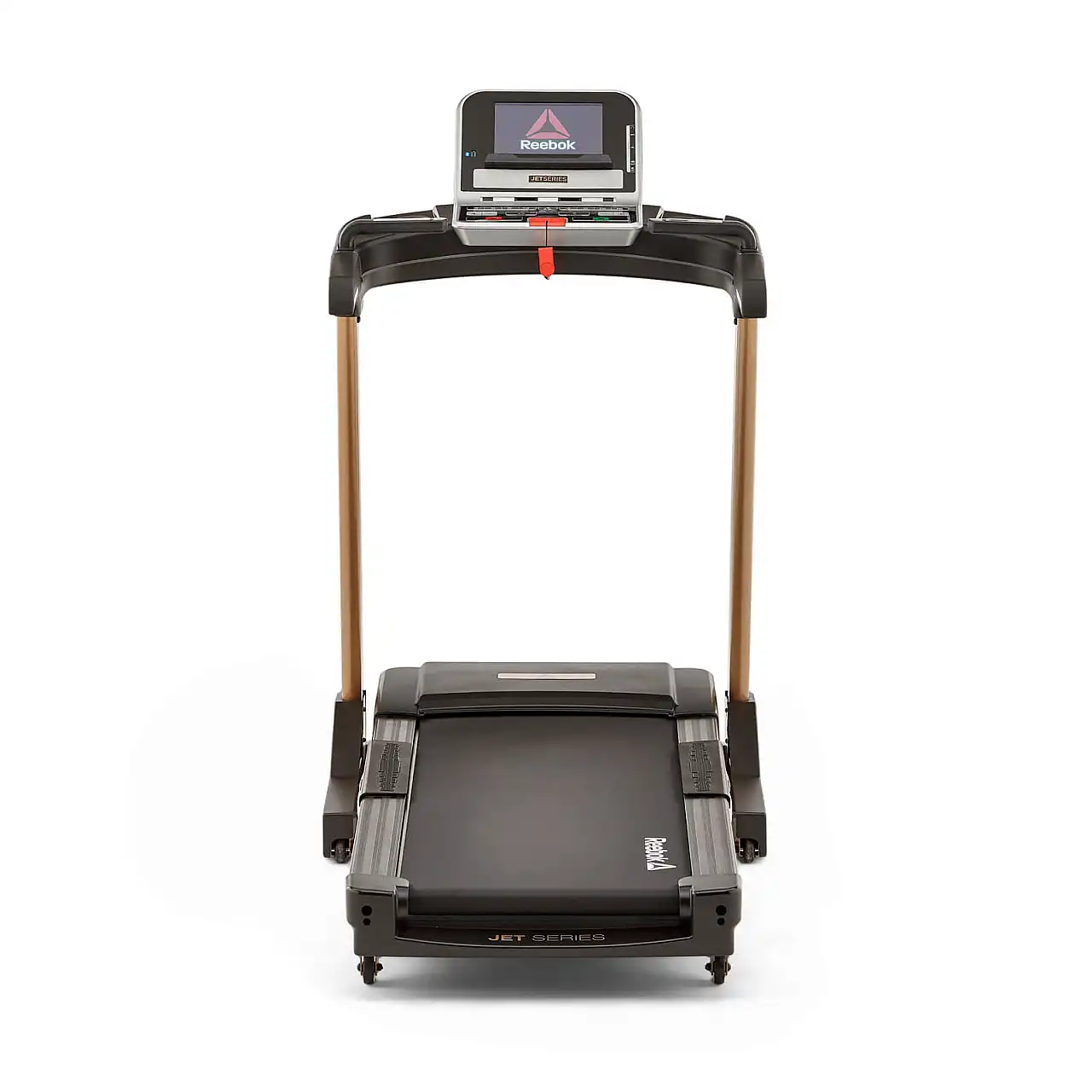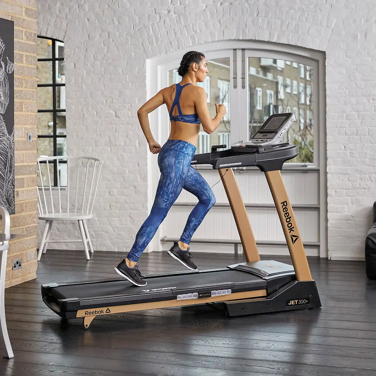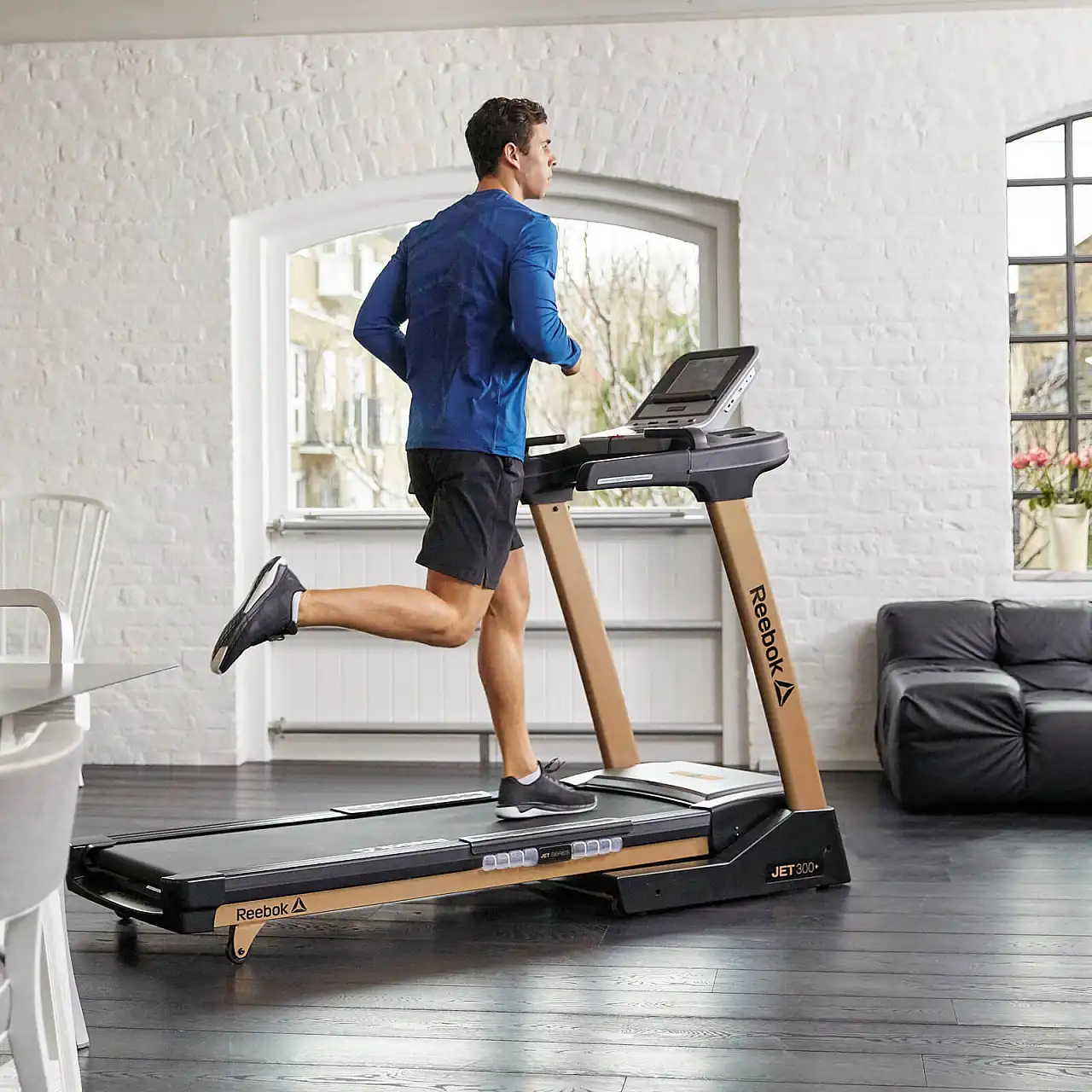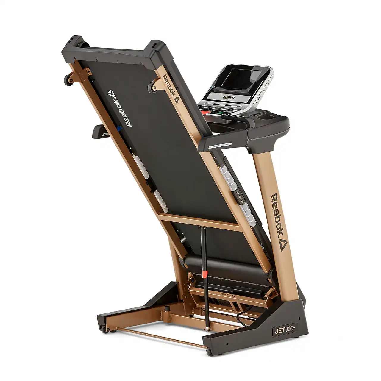 Проста у складанні, з простими інструкціями та всіма необхідними інструментами в комплекті, 300+ має вбудовані колеса для транспортування та механізм складання з м'яким падінням для легкого зберігання та транспортування бігової доріжки. На серію Jet + поширюється гарантія якості Reebok, що включає 25-річну гарантію на раму, 10-річну гарантію на двигун та 2-річну гарантію на комп'ютер, пластик та роботу.