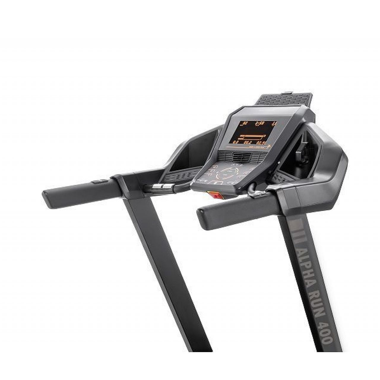 Бігова доріжка Kettler Alpha Run 400 оснащена високоякісним тренажерним комп'ютером з інтуїтивно зрозумілим навігаційним меню, доступним на 3 мовах (німецька, англійська та французька). Розмір дисплея становить 190х110 мм , що означає, що навіть під час інтенсивних тренувань найважливіші параметри залишаються читабельними. Комп'ютер має 32 вбудовані тренувальні програми , завдяки яким можна регулювати інтенсивність тренувань відповідно до фізичної форми та стану користувача. Дозволяє регулювати кут нахилу бігового полотна в діапазоні від 0 до 12% і швидкість в діапазоні 1 - 20 км/год. Також можна визначити 4 користувачів на комп’ютері.