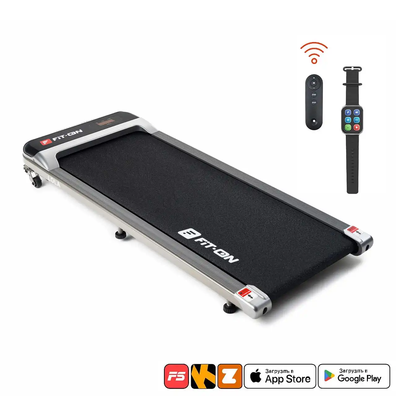 Оснащена двигуном потужністю 1,75 л. (пікова - 2,25 л.с. ), Fit-On Lola забезпечує стабільну роботу при будь-якому навантаженні. Бігове полотно 106×43 см створює комфортні умови як для ходьби, так і для легкого бігу, а міцна конструкція витримує до 100 кг .