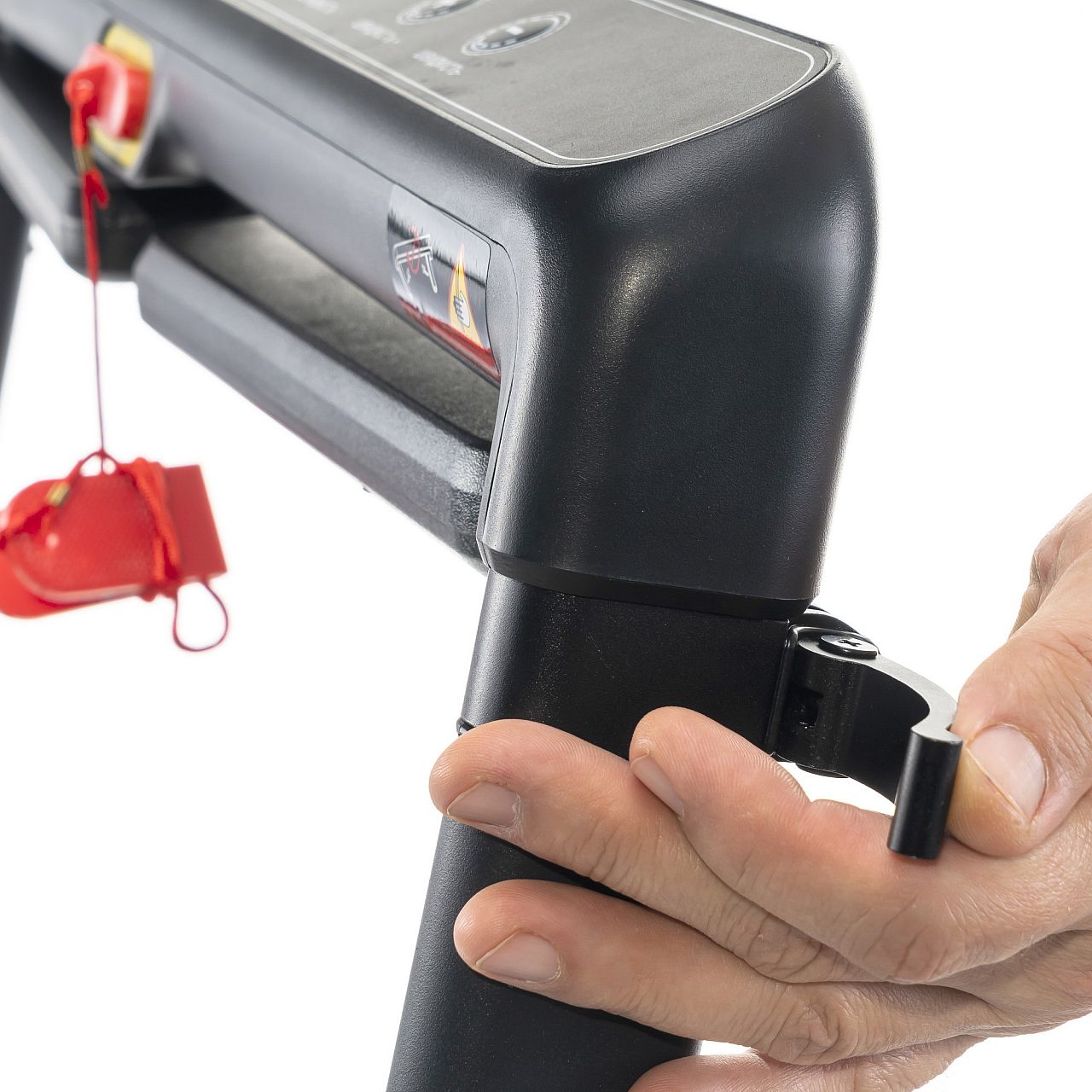 Складна конструкція забезпечує максимальну компактність після завершення тренування – доріжку легко прибрати під ліжко або до шафи. У комплекті є ключ безпеки , який миттєво зупиняє бігове полотно у разі потреби. Така система робить тренування не лише зручними, а й абсолютно безпечними.